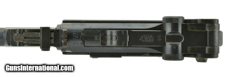 DWM 1914 Artillery Luger 9mm caliber pistol. All matching gun with 98% of the original blue. Straw is present on the small parts. Bore is excellent. Very fine example of an Artillery!