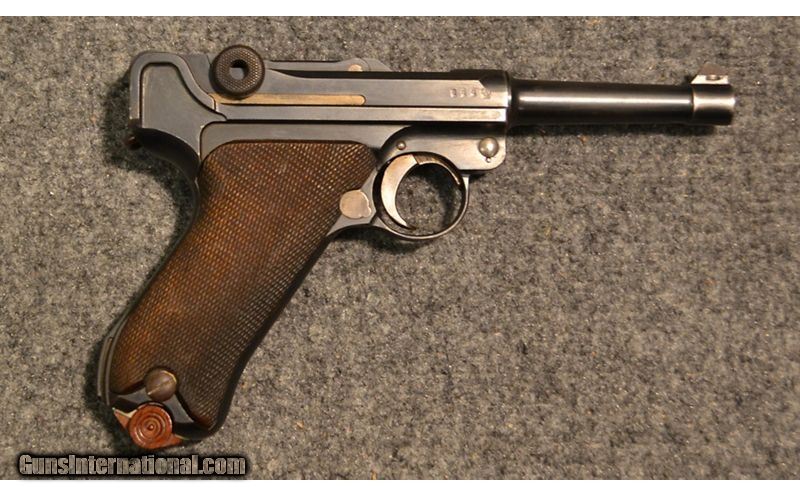 Description: DWM with no caliber or model stamped on the pistol. These were made by Deutsche Waffen und Munitionsfabriken (DWM) during the First World War in 1916. This one is probably in 9mm. This gun has matching serial numbered parts and has definitely seen use. Overall, a very nice piece of history at a reasonable price. Unknown SOLD Curio/Relic: Yes Chambers: 1 Metal Condition: "Very Good, some bluing wear Wood Condition: Very Good Bore Condition: Poor Barrels: 4 Triggers: Factory Weight: 2 lbs Sights: """V"" notch, open Item Location: Thornton, CO |