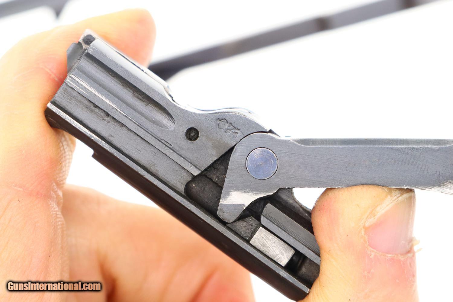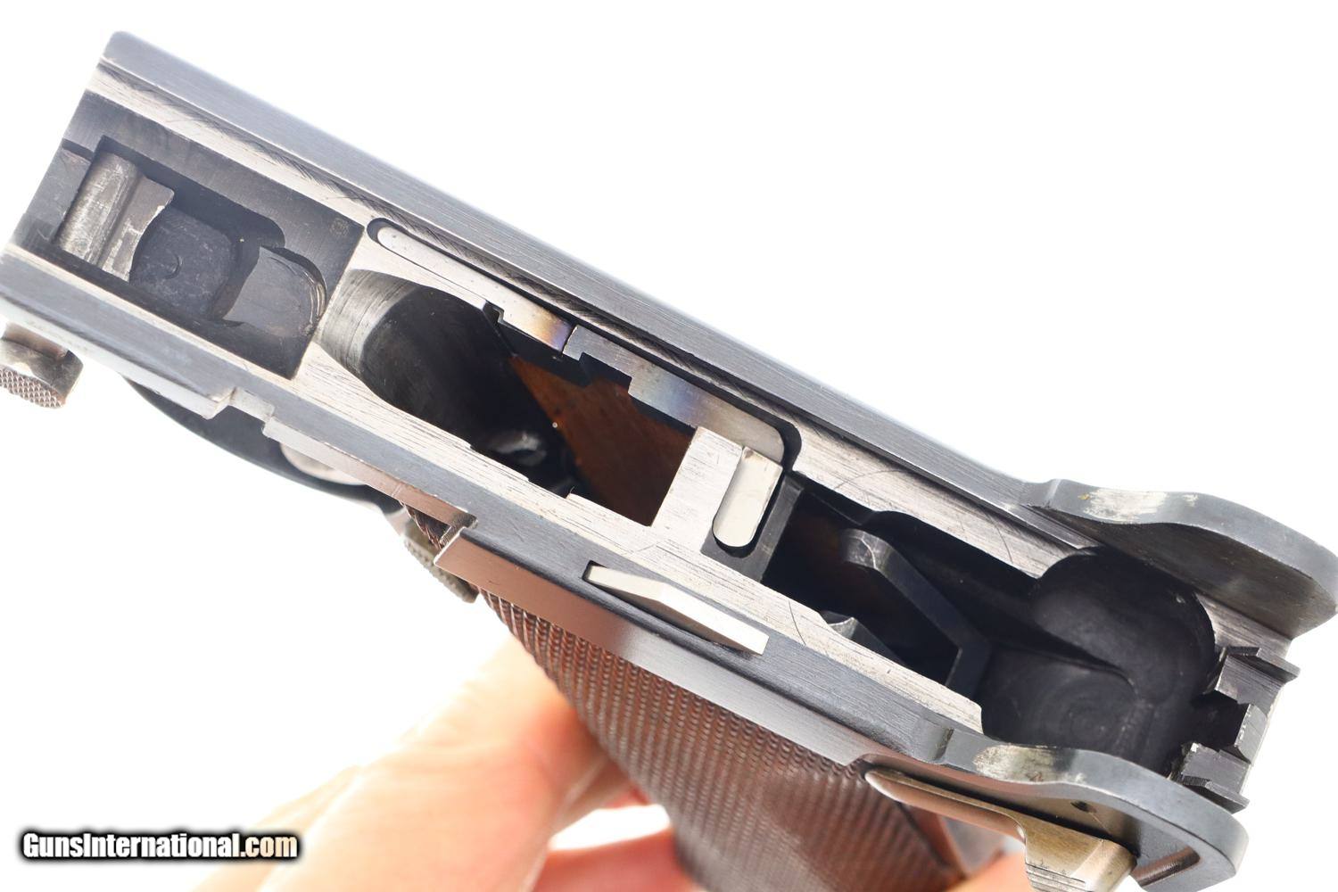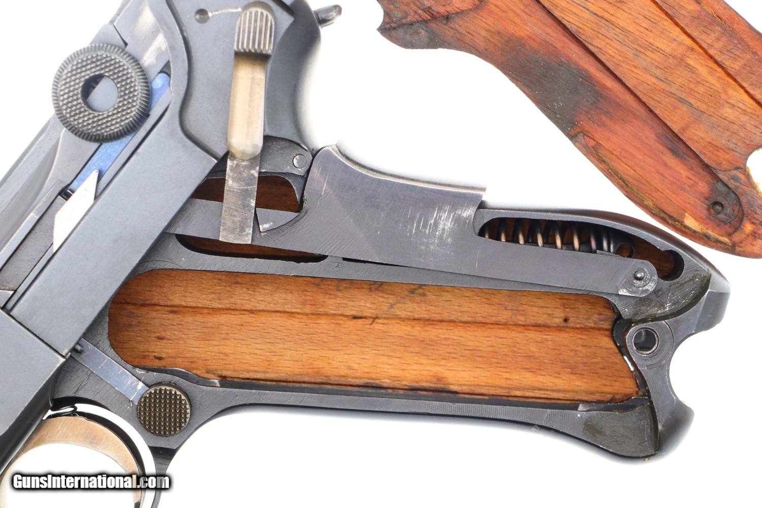 Description: Synopsis: DWM 1920 Commercial Luger, serial number 1, presenting as a 1906 Navy configuration. Description: Outstanding 1906 Navy pattern Luger serial number 1, whose matching number appears under the barrel, under the sideplate and on the rear toggle link. During the re-work, the breech block and trigger were likely replaced as both parts are serial numbered 23. The other parts are largely unnumbered as common to the 1920 pistols, with the export marking “GERMANY” appearing on the rear toggle link and on the left rail. The gun is fitted with the usual checkered walnut panels and has an original Navy magazine whose base with concentric circles has been marked with the Crown/M and numbered 3562. Condition: VG+ with sharp edge wear and handling marks as you might expect from a pistol that is now over 100 years old. Comparable condition grips and crisp magazine whose plug pin shows no evidence of disturbance. Mirror bore. Perfect manual mechanics. An incredible opportunity to own a real serial number 1 Navy configuration Luger! And what collector would not covet a serial number 1! ~~Insured shipping fee of $155; most packages shipped using FedEx 2nd Day.~~ SOLD Curio/Relic: Yes Manufacturer: DWM Serial Number: 1 Caliber Info: 9mmP |