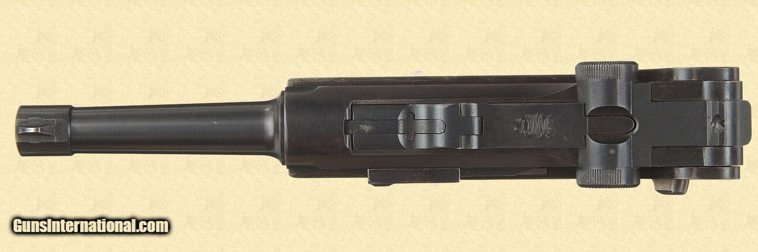 Description: 30 Luger; 95% blue, 90% straw, excellent bore, very good grips, 3 7/8'' barrel, Orignal blue finish, strawed small parts and checkered beechwood grips. All the numbered parts are matching with a correct un-numbered wood bottom magazine which is stamped GERMANY across the base. Stamped on top of the toggle with the DWM logo. Crown/N proofs. GERMANY stamped across on the front of the frame. The metal finish shows sharp edge and high point holstering wear, with a few handling marks on the grip straps. Mechanically fine with a clean sharp bore. C&R/FFL Call 309-342-5800 Tues-Fri between 10am-6pm (CST), Sat 1pm-6pm (CST), to speak to a salesman. FEDERAL FIREARMS LICENSE (FFL): is required on all shipments of modern guns. We must wait for a copy from your dealer before we can ship to them. We will also ship C&R eligible firearms to Curio and Relic (C&R) license holders. We accept your signed, legible FFL and C&R licenses via fax at 309/ 342-5730 (always on), email at FFLsimpsonltd or through the mail at Simpson Ltd; 140 S Seminary St; Galesburg, IL 61401. Pre-1898 firearms and non-firearms items are exempt from licensing requirements. All items shipped to an Illinois address will be charged 8.75% sales tax. NOTE: Because of recent shipping restrictions and charges placed on us by UPS and FedEx (handguns must ship via next day or 2nd day air and they have added a $10 surcharge for parcels over 48”. Our return policy lasts a maximum of 3 days from the time you receive your item. If 3 days have passed since you received your purchase, and we have not been contacted by you, unfortunately, we can’t offer you a refund or exchange. If you are not happy with your purchase, please contact us by phone and/or email to arrange for a return. Items must be shipped back to us to arrive with 7 days of notification of return. SOLD Curio/Relic: Yes Serial Number: 267l |