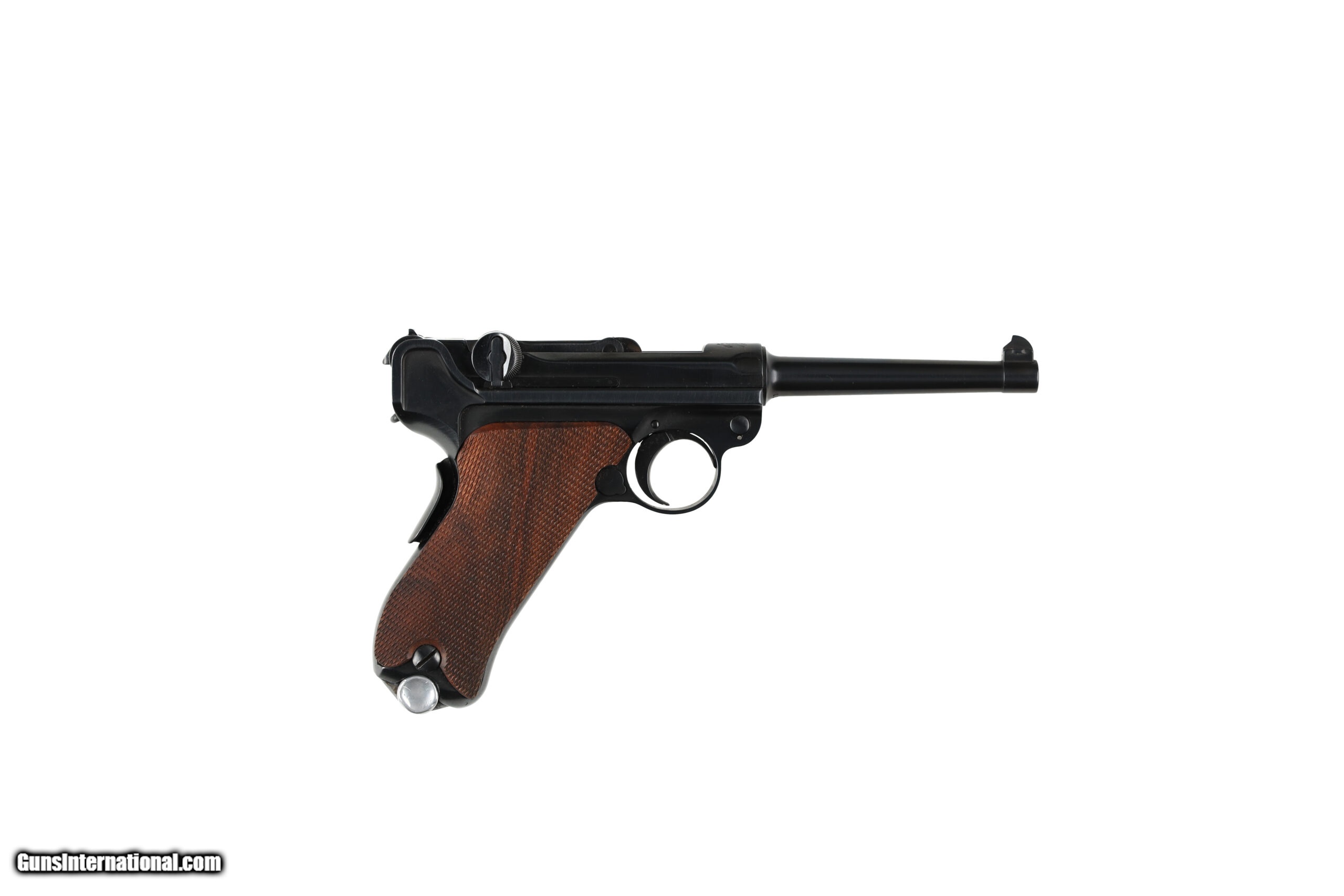 Description: Pistol has been partially refinished. Manufactured in: Germany Action Finish: Blue Barrel Length: 5 Inches Barrel Condition: Very Good SOLD Manufacturer: DWM Model: Luger Caliber Info: .30 Luger Condition: Preowned Metal Condition: Very Good Action: Semi Automatic |