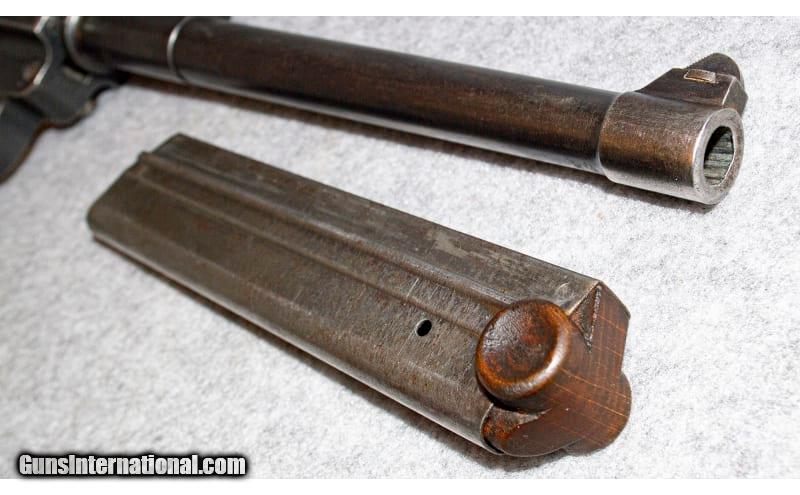Description: DWM LP.08 1918 Artillery in 9x19mm; very good blue, strong bore, 7 7/8' barrel, Original blued finish, strawed small parts and checkered walnut grips. Matching numbers. Grips are not marked. Magazine is a commercial variation with an unmarked wood bottom. Standard Imperial proofing on the right side of the receiver. Fixed front and 800 meter tangent rear sights. 1918 date stamped over the chamber with DWM on toggle. Metal finish shows light edge wear and some high point wear on muzzle. Mechanically fine. Not import marked. Bore has strong rifling. Comes with original holster unmarked and cleaning rod. 9mm Luger SOLD Barrels: 7 7/8th Item Location: Lone Tree, CO |