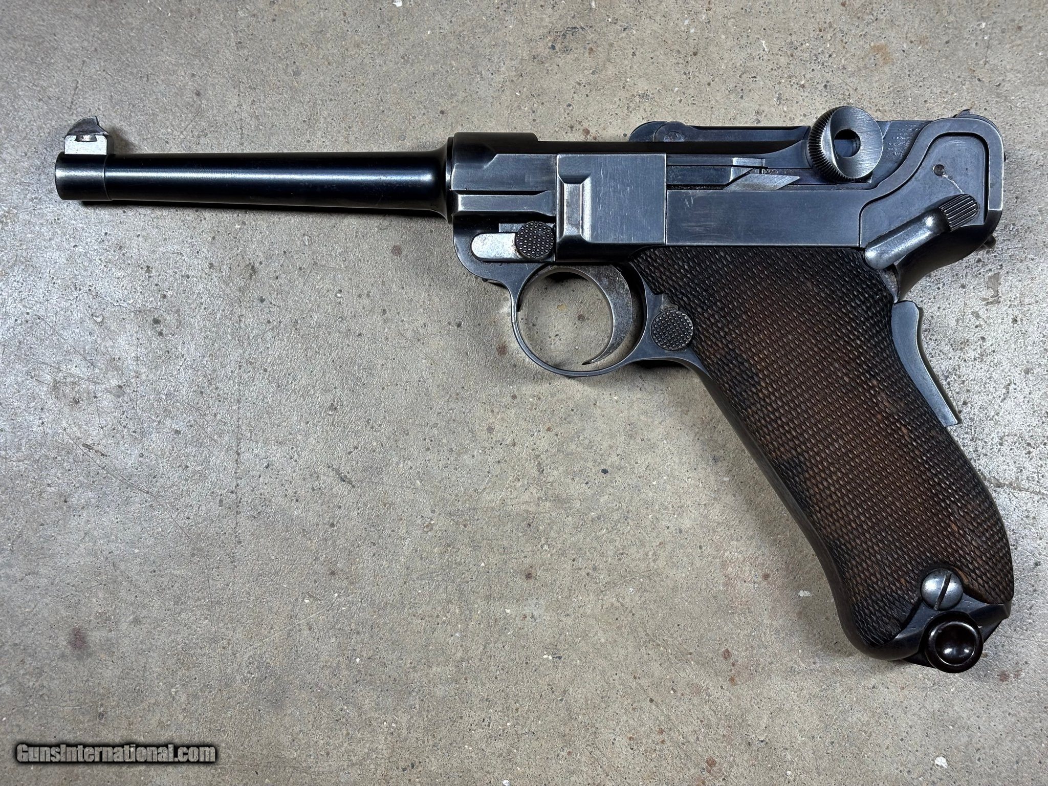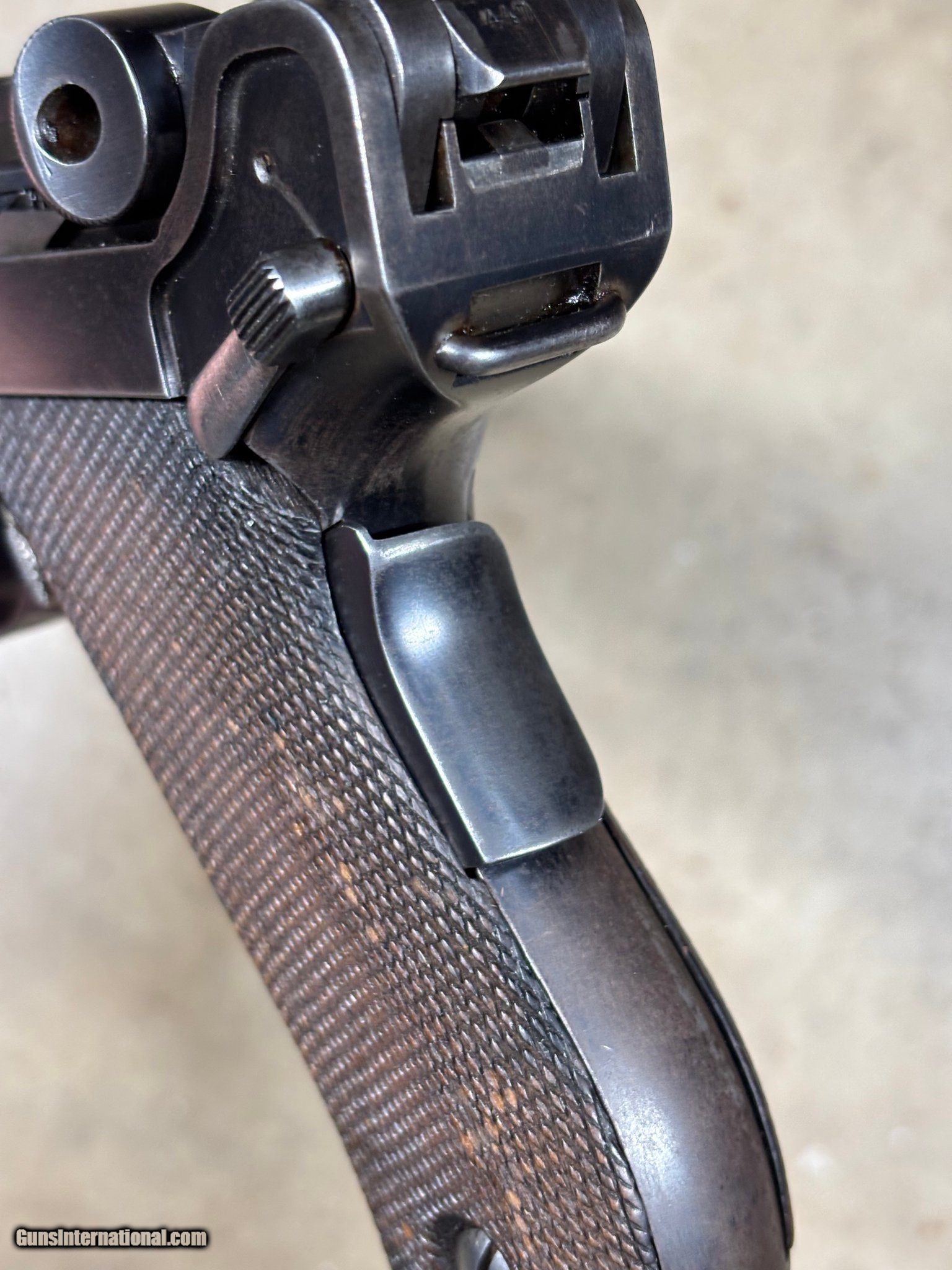 Description: Guns Listing ID: 506982 For sale is a very interesting piece in early automatic handgun history. This is a 1900 pattern Luger, commonly referred to as a “dish toggle” due to the toggle shapes. This gun was made in 1900 and was used to solicit contracts for Luger pistols. This is a Pre P08 Luger and features some unique features that ae only seen on this pattern and the Swiss pattern, such as the grip safety, toggle shape, and longer barrel. This is a very clean gun and would make an excellent edition to any collection! SOLD Manufacturer: DWM Model: luger 1900 dish toggle pre p08 Caliber Info: 7.65X21MM PARABELLUM (.30 LUGER) Condition: Used - Non-Certified Barrels: 4.75 Action: SEMI AUTOMATIC Finish: black |