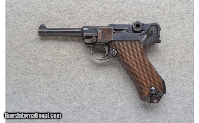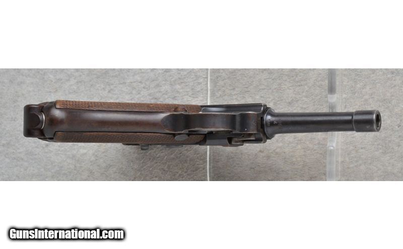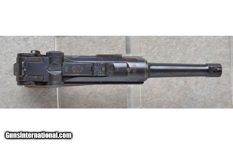 Description: This DWM Model Luger 1918 is a right hand semi-auto pistol in 9mm Cal. It has a 4 inch barrel. A blade front and notch rear sight. The grip is a diamond checkered walnut. Serial Number 7100h matches in 8 locations. The magazine serial number does not match. Truly a classic and highly sought after pistol for shooters and collectors alike. 9mm Luger SOLD Chambers: Semi-Auto 7 round magazine. Metal Condition: Good. A little blue wear and patina. Wood Condition: Good with light wear. Bore Condition: Good. Barrels: 4 inch. Weight: 32 oz. Sights: Blade front. Notch rear. Item Location: Richfield, WI |