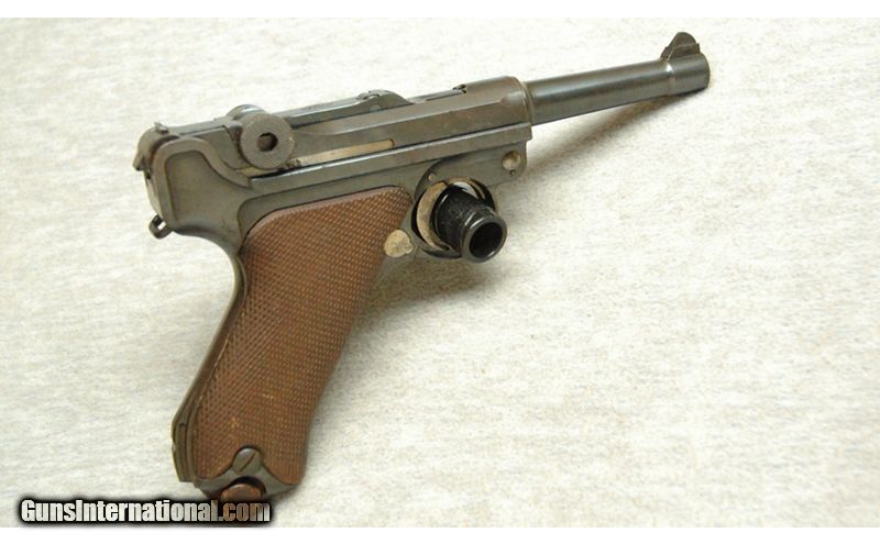 Description: DWM Luger Pistol. Good condition, some wear, areas of light corrosion. Comes with one mag, visible numbers matching. .30 Luger/7.65x21 Parabellum SOLD Chambers: Semi auto Metal Condition: Good Wood Condition: Grips are in good condition Bore Condition: Bright Barrels: 4 Triggers: Toggle link action Butt Pad: Wood grips Sights: Fixed sights Item Location: La Vista, NE |
