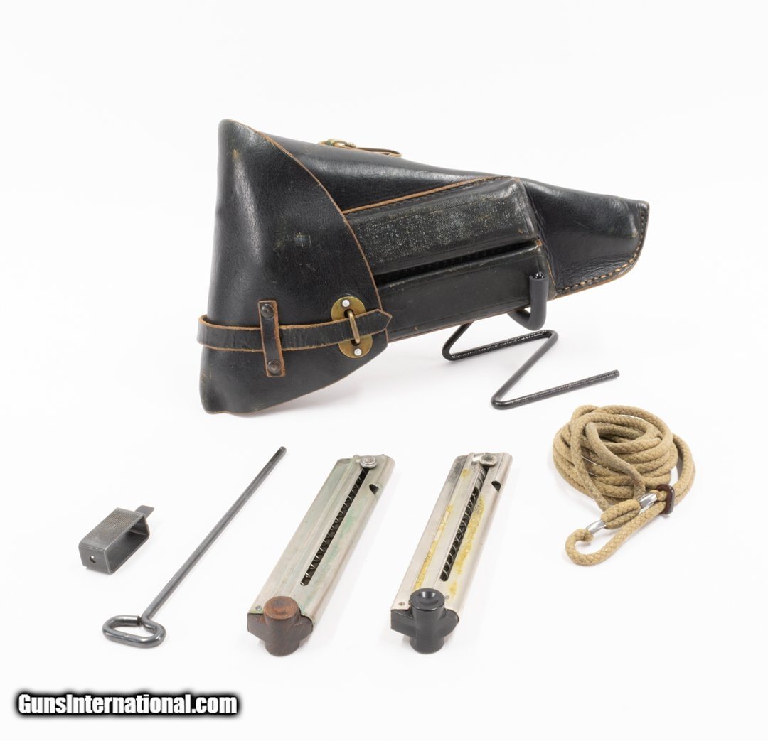 Description: Guns Listing ID: 1435247 DWM Commercial Luger .30 Luger w/ 2 Mags and Holster Manufacturer: DWM Model: Luger Condition: Very good Caliber: .30 Luger Action: Semi-auto/Toggle lock Barrel Length: 4\" Overall Length: 8\" Capacity: 8+1 Features: Barrel, toggle action, and frame serial are matching, fixed sights. Inventory: Firearm, (2) 8-rd magazine, leather holster, lanyard. • Please be aware that we have not test fired this gun. Unless otherwise stated, expect this firearm to fire and function safely. SOLD Manufacturer: DWM Model: LUGER Caliber Info: 7.65X21MM PARABELLUM (.30 LUGER) Condition: Used - Non-Certified Barrels: 4 BARREL Finish: BLACK |