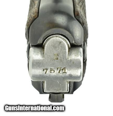 DWM Luger 9mm caliber pistol. 1920 Commercial Luger reissued to the German police during the 1920’s. 9mm Barrel. Serial numbers are matching, including the magazine. Note: This fine pistol has a gorgeous Haenel Schmeisser magazine with Haenel “arrow” trademark. Bore has strong rifling with frosting.