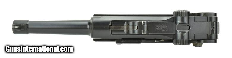 Description: DWM Luger 9mm caliber pistol. 1920 Commercial Luger reissued to the German police during the 1920’s. 9mm Barrel. Serial numbers are matching, including the magazine. Note: This fine pistol has a gorgeous Haenel Schmeisser magazine with Haenel “arrow” trademark. Bore has strong rifling with frosting.