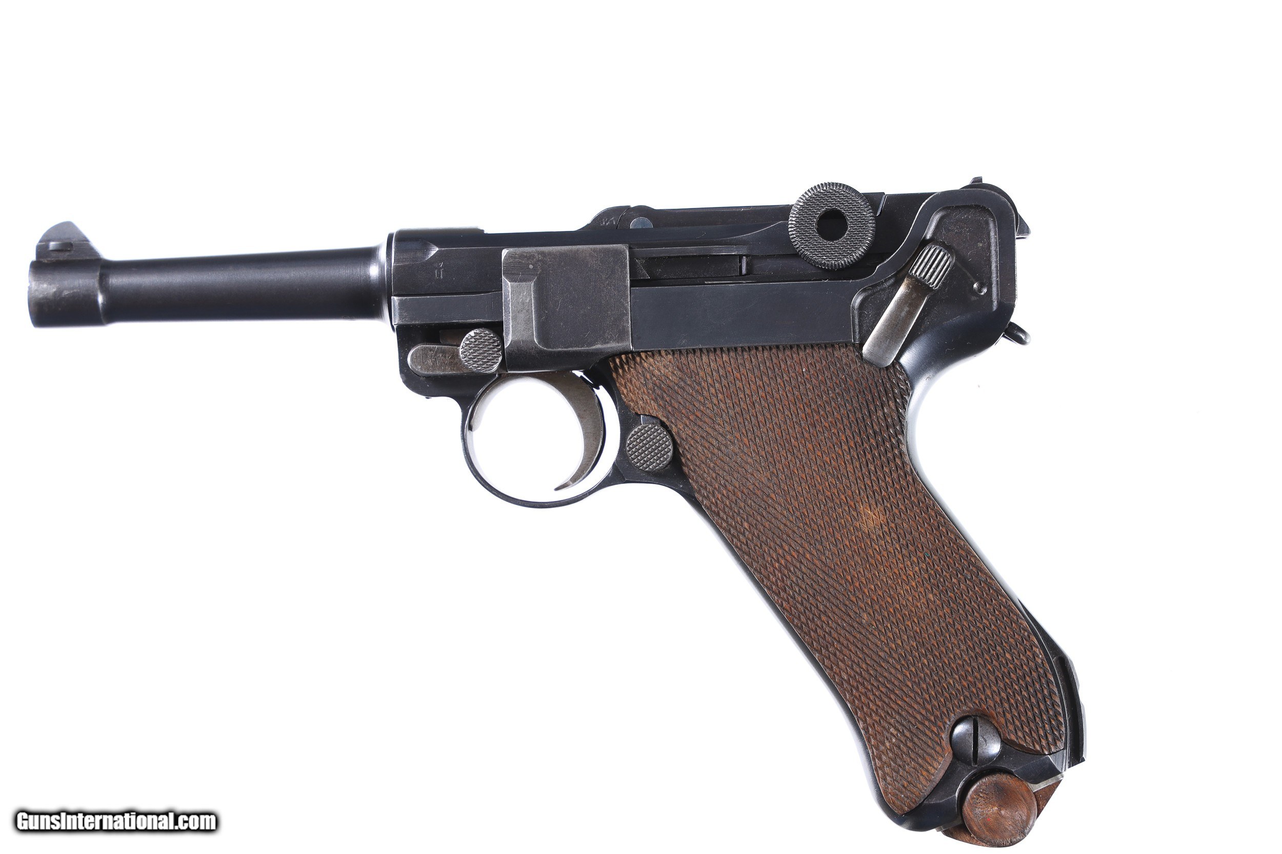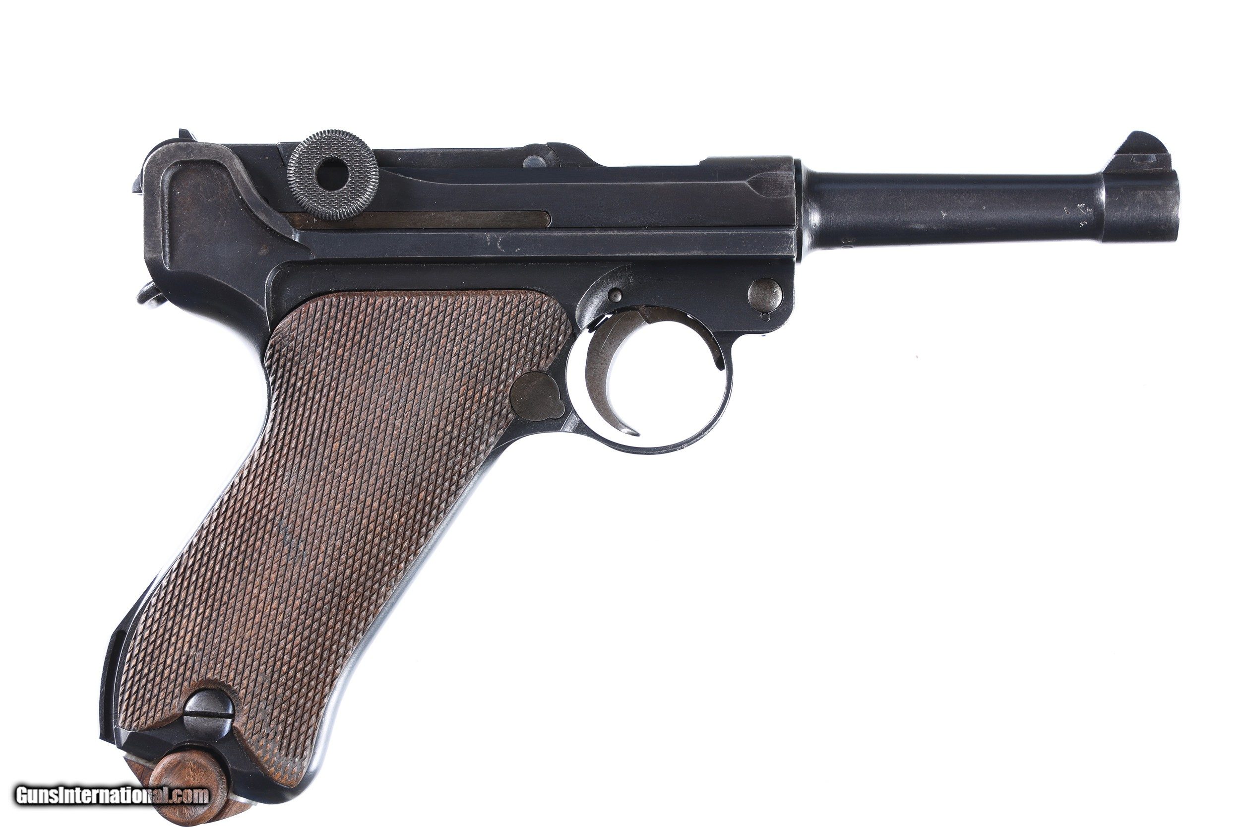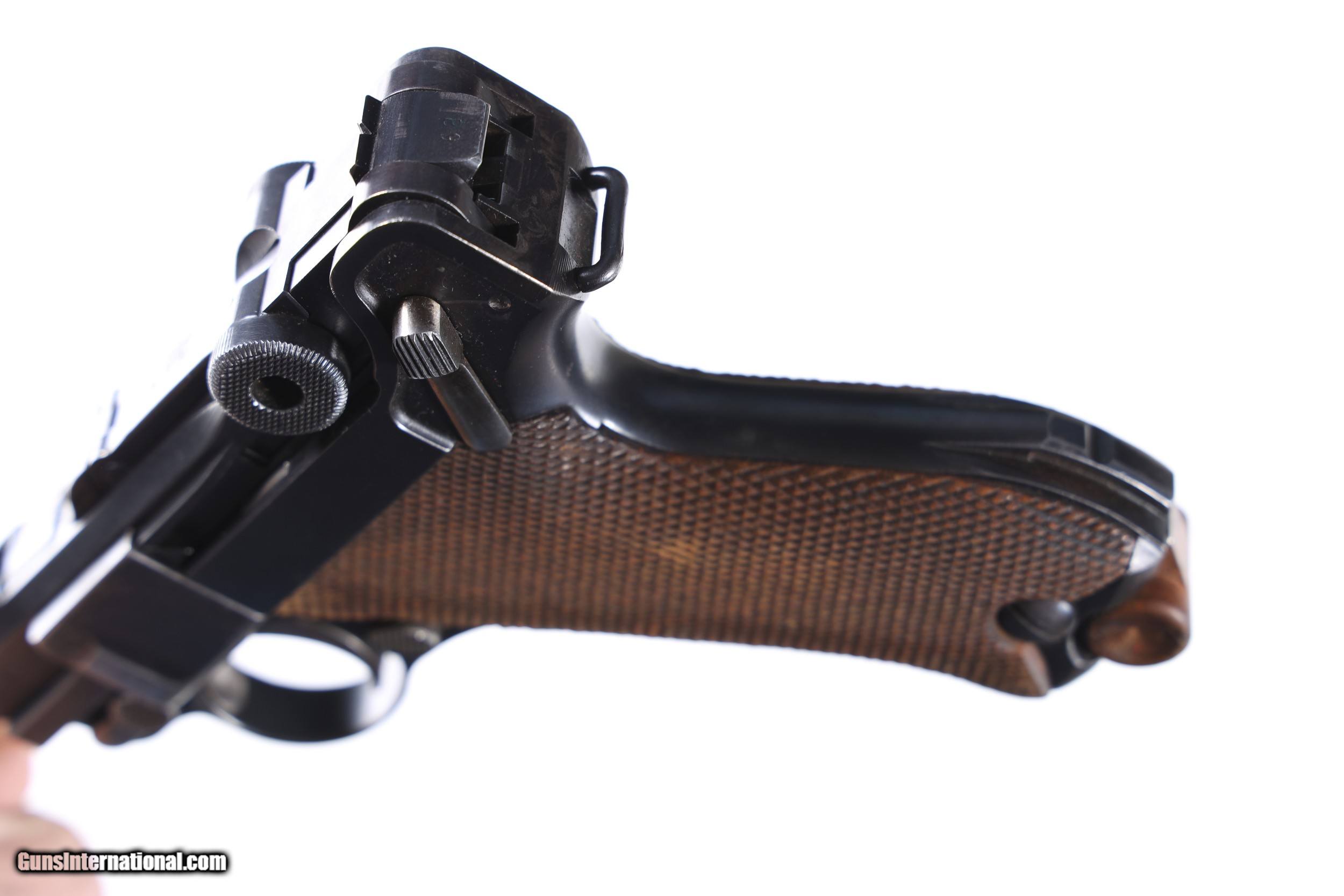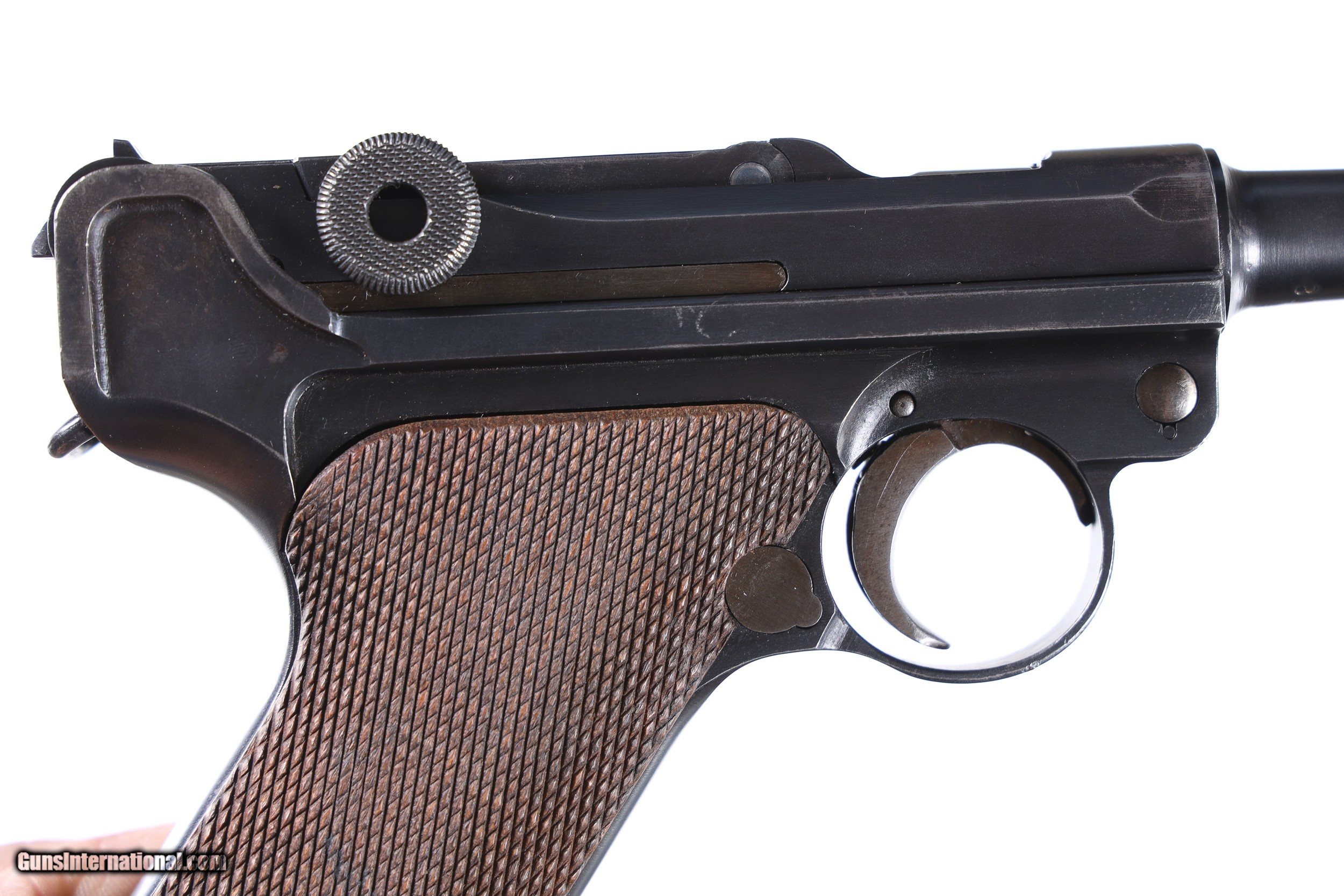 Description: Very good plus overall condition, strong original straw coloring remaining, blank chamber. Marked Germany, correct Germany marked magazine. Free Shipping, No Credit Card Fees! SOLD Manufacturer: DWM Model: Luger P08 Serial Number: 8068K Barrel Length: 3 3/4 Caliber Info: .30 luger |