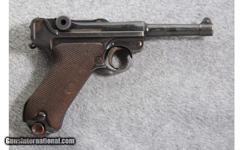 Description: A nice DWM Luger dated 1920, with a 4 inch barrel, matching numbers firearm including magazine. Looks to be a commercial model. SOLD Metal Condition: Excellent with wear and patina Wood Condition: Excellent with wear Bore Condition: "Some what bright, rifling present but worn, no pitting or corrosion evident Barrels: 4 inches Triggers: Single action auto Weight: 2 lbs Sights: fixed iron sights Item Location: Gonzales, LA |