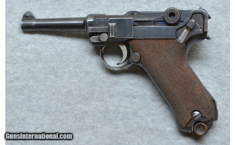 Description: SOLD Manufacturer: SN#: 8733 Caliber Info: Unknown, appears it might be 7.65, but caliber is not marked Metal Condition: Good with Some Blueing Wear Wood Condition: Good Bore Condition: Brite and Shiny with Good Rifling Barrels: 3 7/8 Triggers: Smooth Stock: Wood Grips Weight: 32 oz. Sights: Front Blade, Rear Notch Extras: with Holster and two Extra Magazines Item Location: Hazelwood, MO |