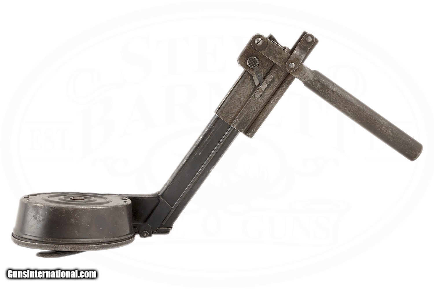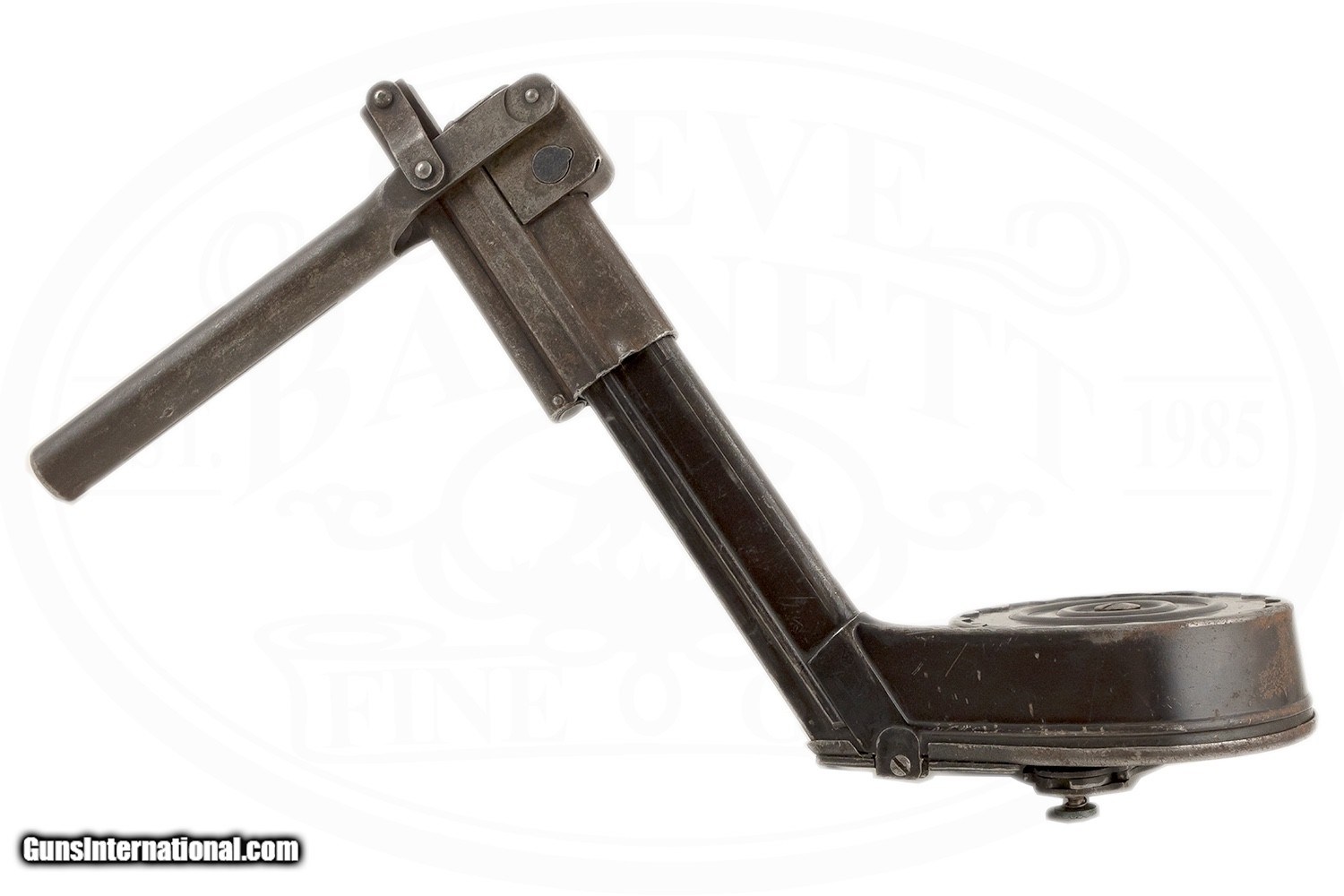 Description: SN# 24088 ALL NUMBERS ON GUN MATCH STOCK IS NUMBERED TO GUN FOREARM NUMBER MATCHES GUN MAGAZINE DOES NOT HAVE A NUMBER 11 3/4" BARREL WITH ADJUSTABLE REAR SIGHT DETACHABLE FOREARM 1 REGULAR MAGAZINE 1 SNAIL DRUM AND LOADER CASED IN WOODED DISPLAY CASE GUN IS IN EXCELLENT OVERALL CONDITION SOME LIGHT HANDLING MARKS HERE AND THERE. NOTHING OUT OF THE ORDINARY SOME MINOR BLUE WEAR ON MUZZLE SOLD |