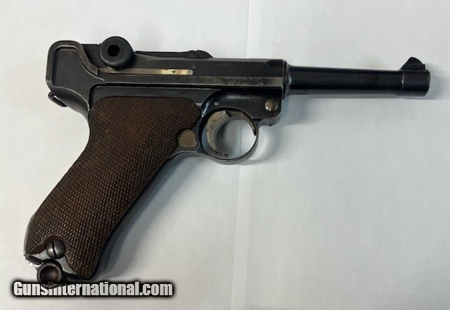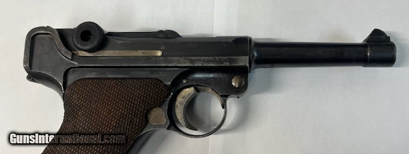 Description: Guns Listing ID: 471312 This is a DWM German Luger P08 9mm SN: 8411m. This is a 1918 all matching numbers, grips look to be original but no number. Some straw left. Two repro magazines included with the gun. Repro magazines do not hold the matching hold open device up. This is in very good condition. The left side of the Barrel has some scuff marks on it, but it is not pitting. Bore is very good to excellent Included is a 1918 J.F. Claude Berlin holster in excellent condition with a unit marked WW1 proofed takedown tool. SOLD Manufacturer: DWM Model: P08 Caliber Info: 9MM LUGER (9x19 PARA) Condition: Used - Non-Certified Barrels: 4 BARREL Finish: blue |