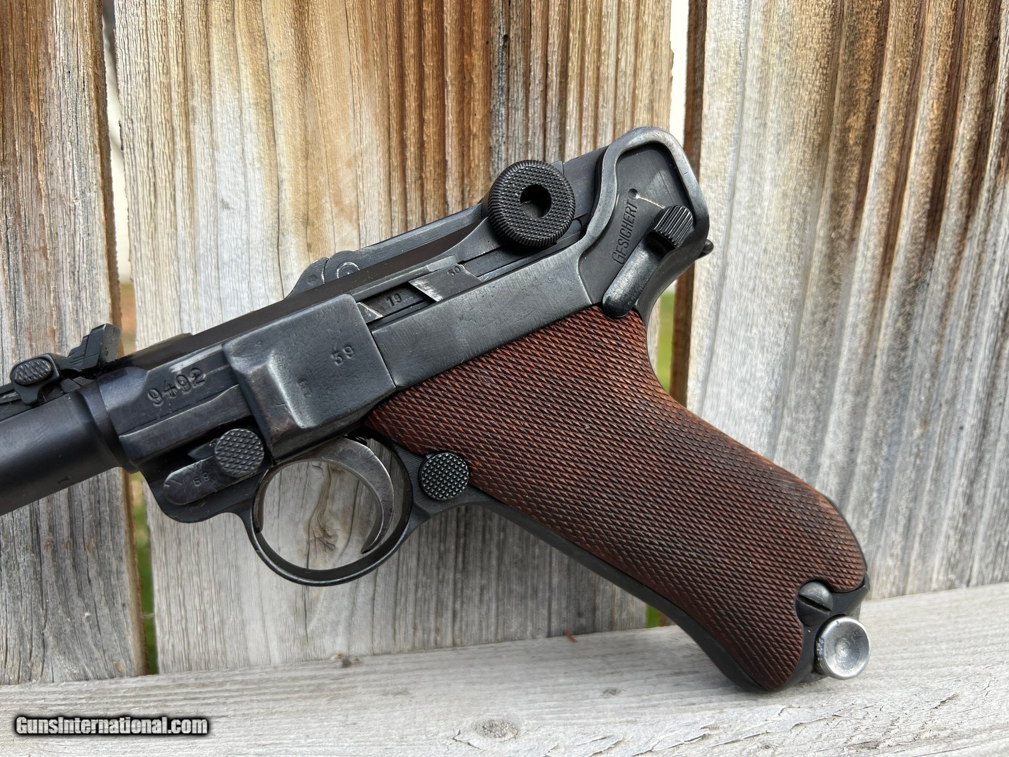 Description: Guns Listing ID: 592431 Caliber: 9mm Luger Manufacturer: DWM (Deutsche Waffen- und Munitionsfabriken) Model: P.08 “Artillery" Luger Year of Manufacture: 1917 Barrel Length: 8\" Long-Barrel (Artillery Configuration) Action: Semi-Automatic Up for is a 1917 DWM P.08 Artillery Luger, one of the most iconic and desirable configurations of the P.08 series. The Artillery model was designed for WWI field units, featuring the distinctive 8-inch barrel, tangent adjustable rear sight, and long sight radius. This example features a 1917 chamber date with the DWM scroll on the toggle, correct for this production year. Major components—including the frame, barrel, receiver, and toggle assembly—are mismatched, with proper imperial acceptance and proof marks intact. Adjusting rear sight is fully functional. Bluing appears original, showing honest service wear but no signs of refinishing. Bore is bright with strong rifling and no pitting. Whether for a WWI collection or as a shooting piece, this Artillery Luger is a standout example. Curio/Relic: Yes Manufacturer: DWM Model: P08 Caliber Info: 9MM LUGER (9x19 PARA) Condition: Used - Non-Certified Barrels: 8" BARREL Action: SEMI AUTOMATIC Finish: black and wood Price: $2,000.99 Contact Seller |