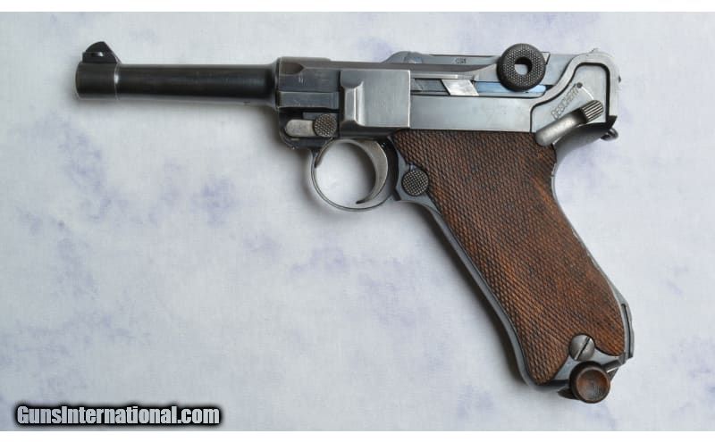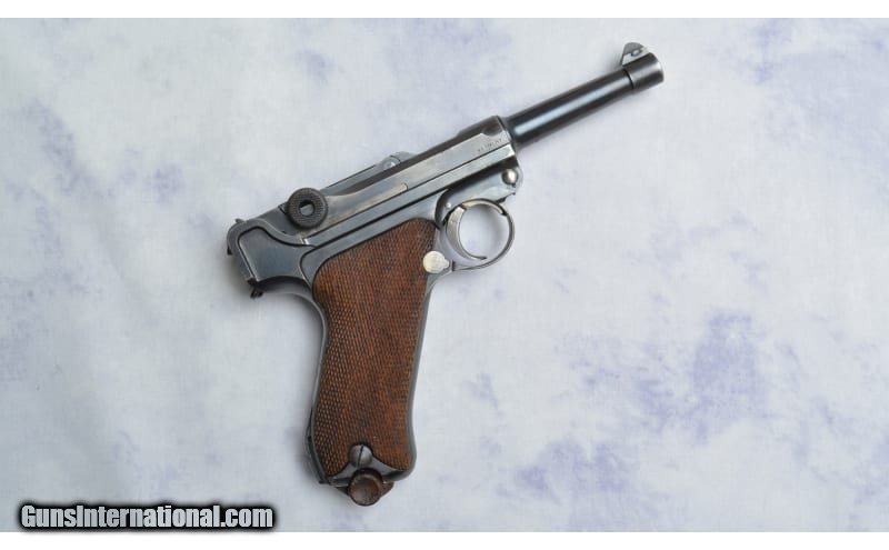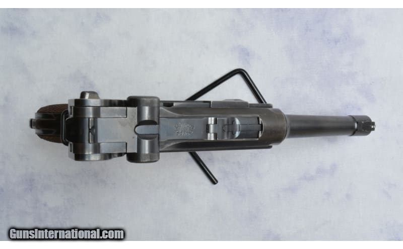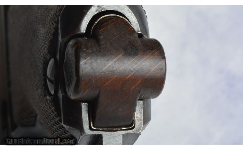 Description: This DWM P08 features; 4" Barrel with unmarked .30 Cal. chamber, "GERMANY" Export Stamp, "GESICHERT" Stamp, Commercial Nitro Proof, Matching External Numbers, Non-matching Wood Bottom Magazine. Hard Case and One (1) Magazine. None SOLD Metal Condition: Very Good Wood Condition: Very Good Bore Condition: Very Good Barrels: 4 Item Location: Green Bay |
