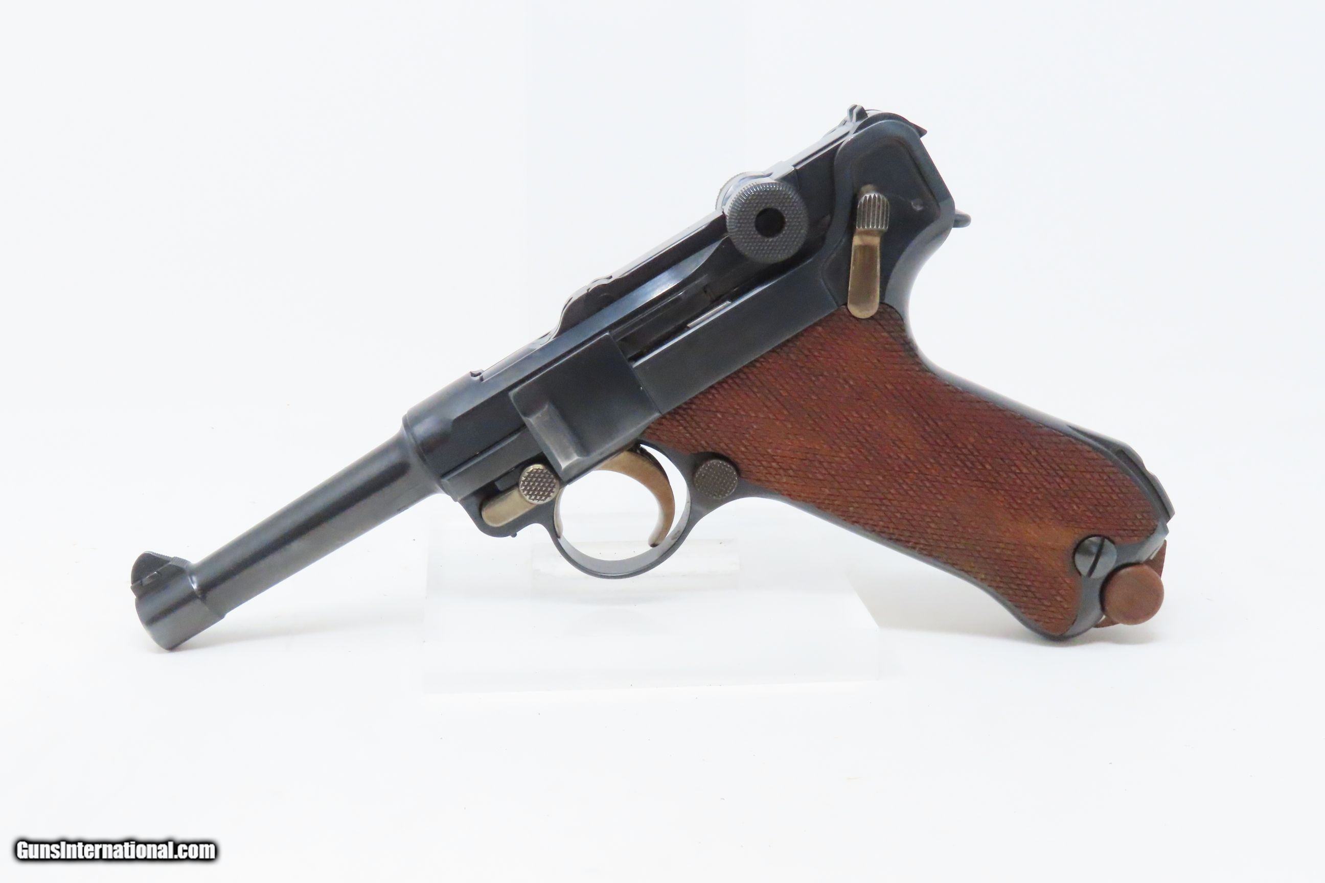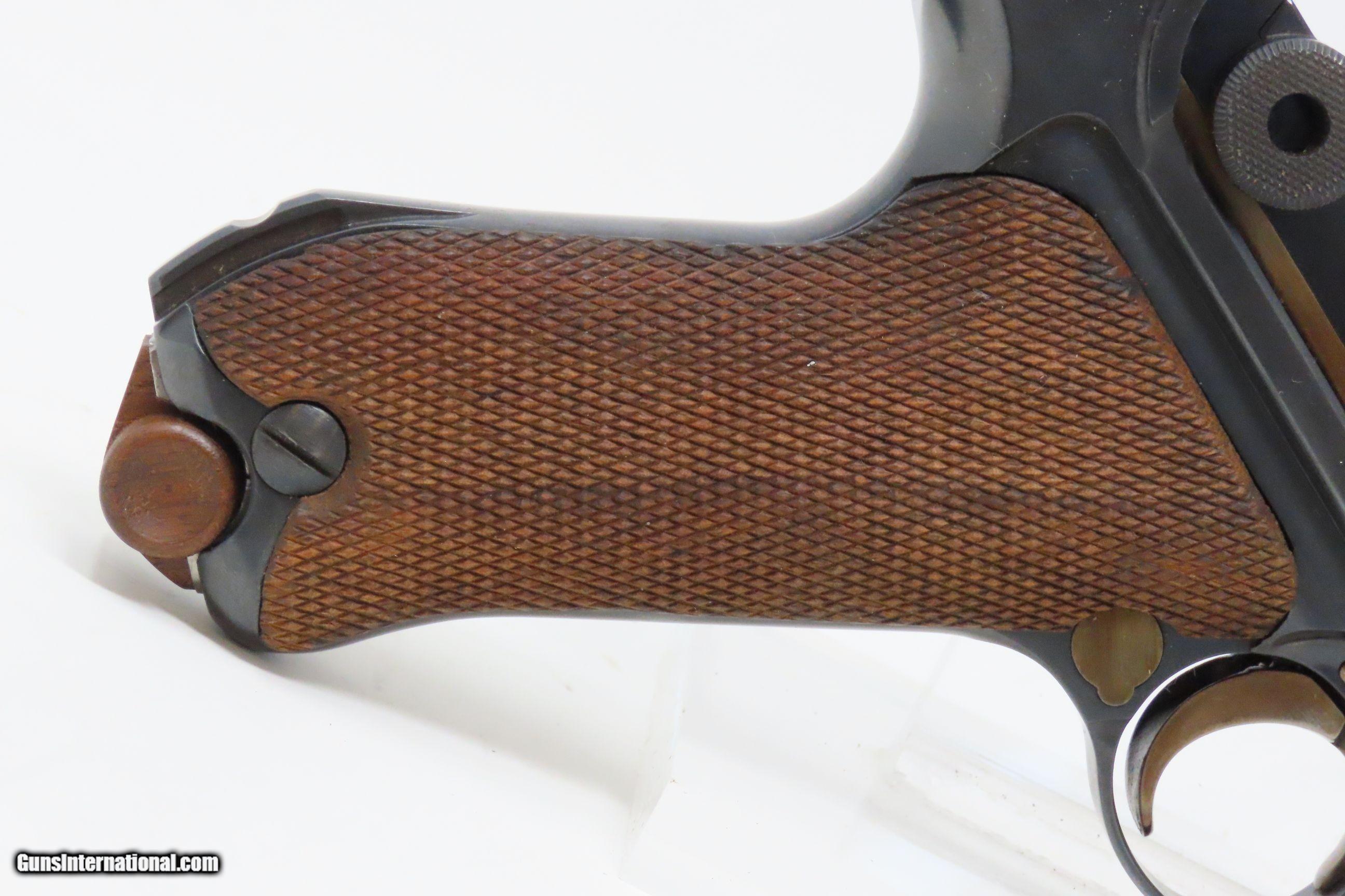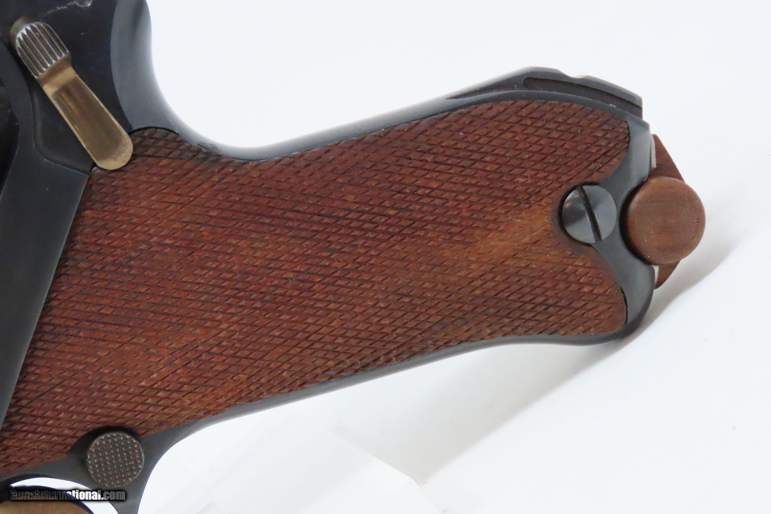 Description: NICE Blank Chamber DWM German LUGER P.08 7.65mm Semi-Automatic PISTOL C&R COMMERCIAL Luger with LEATHER HOLSTER Here we present a C&R German Blank Chamber DWM (Deutsche Waffen-und Munitionsfabriken) Pistole Parabellum P.08 Luger Pistol, made circa the late 1930s in Berlin. Basing his design off Hugo Borchardt’s seminal C93, Georg Luger successfully brought Borchardt’s work to practical fruition. While finding buyers for the C93 seemed an exercise in futility, the new Luger Pistol found many countries eager to test it and even adopt it. In 1900 the United States ordered 1,000 Lugers in 7.65x21mm Parabellum, or .30 Luger, for infantry and cavalry trials. It received pushback from soldiers that said the caliber was too small and the firearm itself was unreliable. Which, in turn, led to DMW developing the 9mm caliber version of the Luger shortly thereafter. The “Crown over N” proof mark is marked on this pistol. The Crown over N is a German pre-World War II proof mark used before April 1, 1940. The "N" indicates that the gun has been proofed with "nitro" or smokeless powder. During the interwar period between World War I and World War II, most Luger pistols were chambered in 7.65mm. The reason for this is that immediately after World War I the German government was forced under the Treaty of Versailles to dispose of their 9mm pistols, so they re-barreled them in the smaller 7.65mm parabellum and large numbers were sold off commercially and to foreign governments. Also, manufacturers such as DWM weren’t allowed to produce 9mm weapons, thus the smaller 7.65mm chambering. Although, as Germany neared World War II in the late 1930s, they weren’t paying much attention to the Treaty of Versailles anymore. That’s when DWM began chambering their pistols back in the larger 9mm cartridge. The top of the toggle is marked “DWM”, and “GERMANY” marked frame. The overall condition is very good. Refinished. The action is excellent. The bore is clean and bright with great rifling. The grips are solid. The numbers match. The holster is in good condition. This firearm is classified as a Curio & Relic. Barrel is 3-1/2 inches. Caliber: 7.65x21mm Luger Overall condition as seen in photos. Very Fast. Very Safe. FREE SHIPPING. Will need to be sent to your local FFL or C&R licensee. This firearm is classified as a Curio & Relic. Guaranteed AUTHENTIC & Includes CERTIFICATE OF AUTHENTICITY. ancestryguns $2350 #228360 SOLD Curio/Relic: Yes |