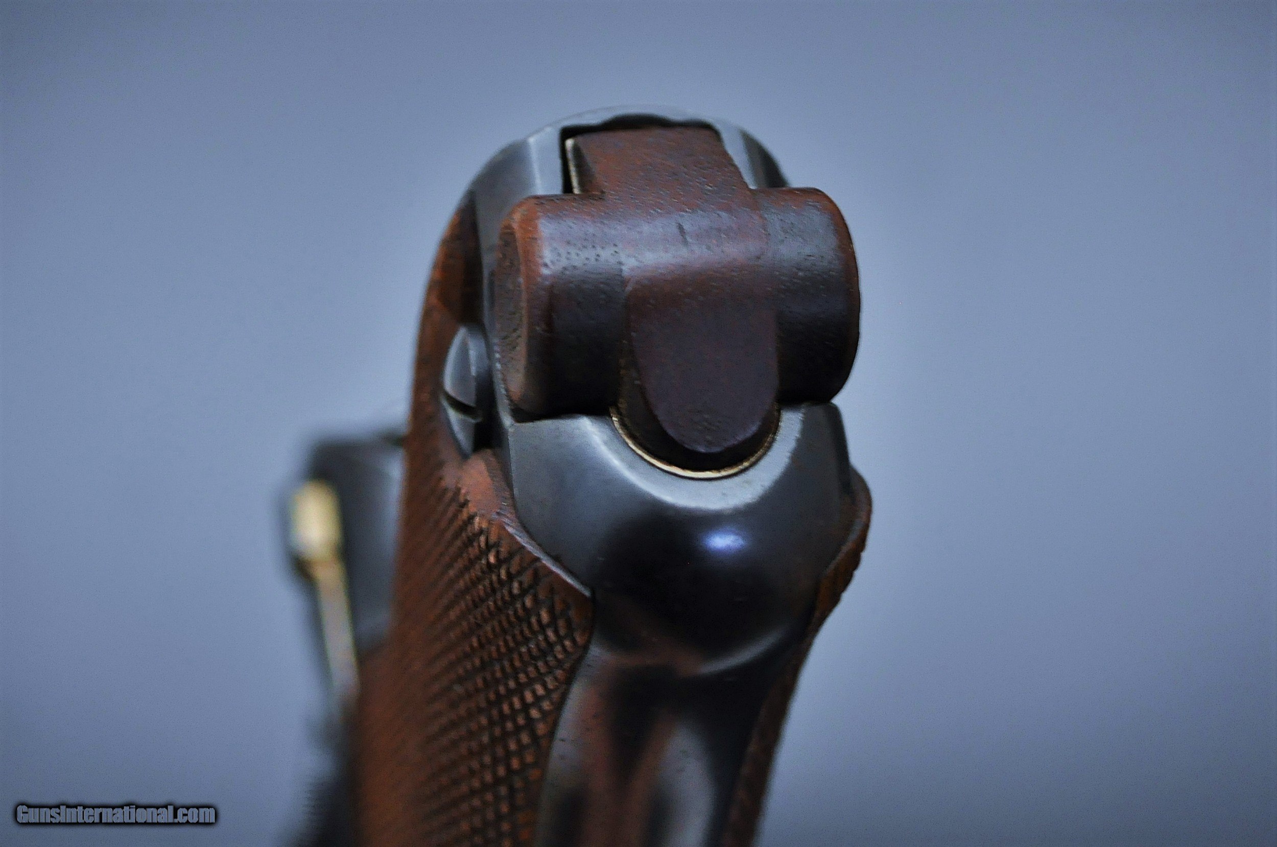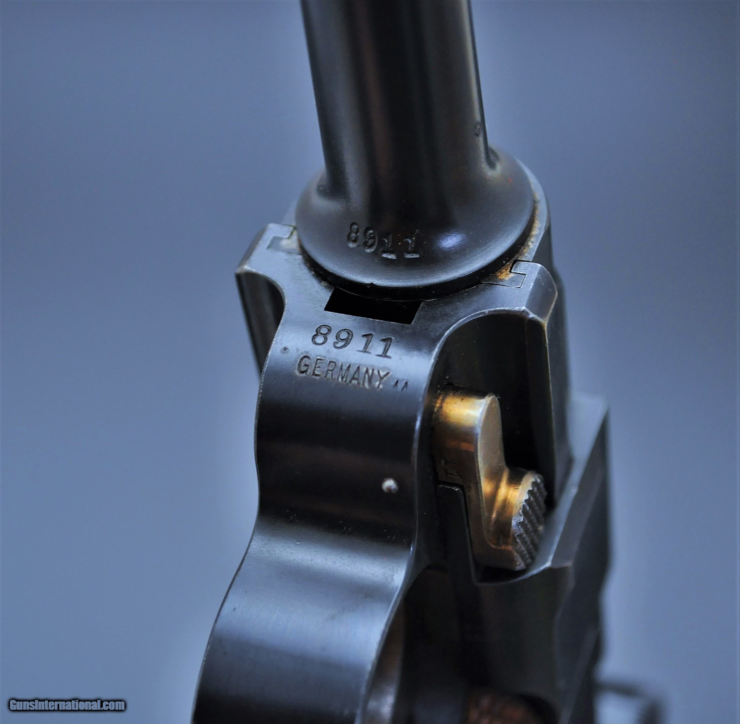 Description: MANUFACTURED in GERMANY, this is an OUTSTANDING 99% RARE CONDITION 1900 DWM American Eagle Semi-Auto Luger in .30 Luger 100% ORIGINAL MATCHING AND CORRECT!! Features include a 4 5/8" barrel with an EXCELLENT SHINY bore, STUNNING CHECKERED walnut grips, 8 round magazine capacity, STRAWED/FIRE BLUED small parts and it's ORIGINAL DWM RUST BLUED FACTORY FINISH!!! OUTSTANDING RARE CONDITION AMERICAN EAGLE LUGER!!! BLUE CHIP INVESTMENT GUN!!!***RICHARD CROSIER'S FINE FIREARMS *** SOLD Curio/Relic: Yes |