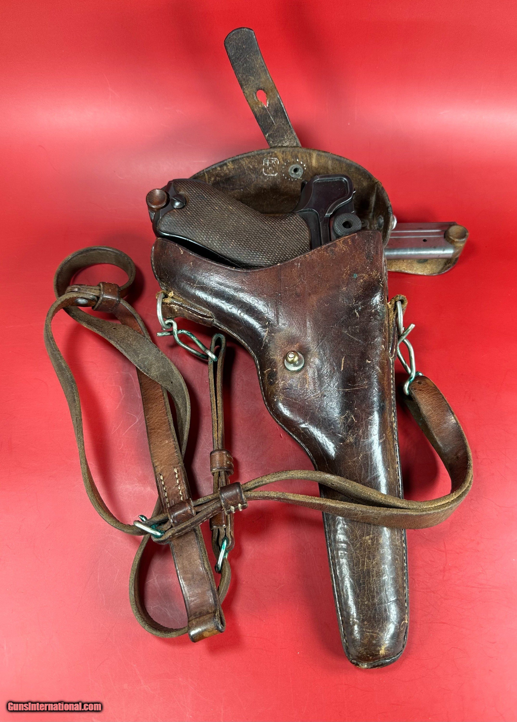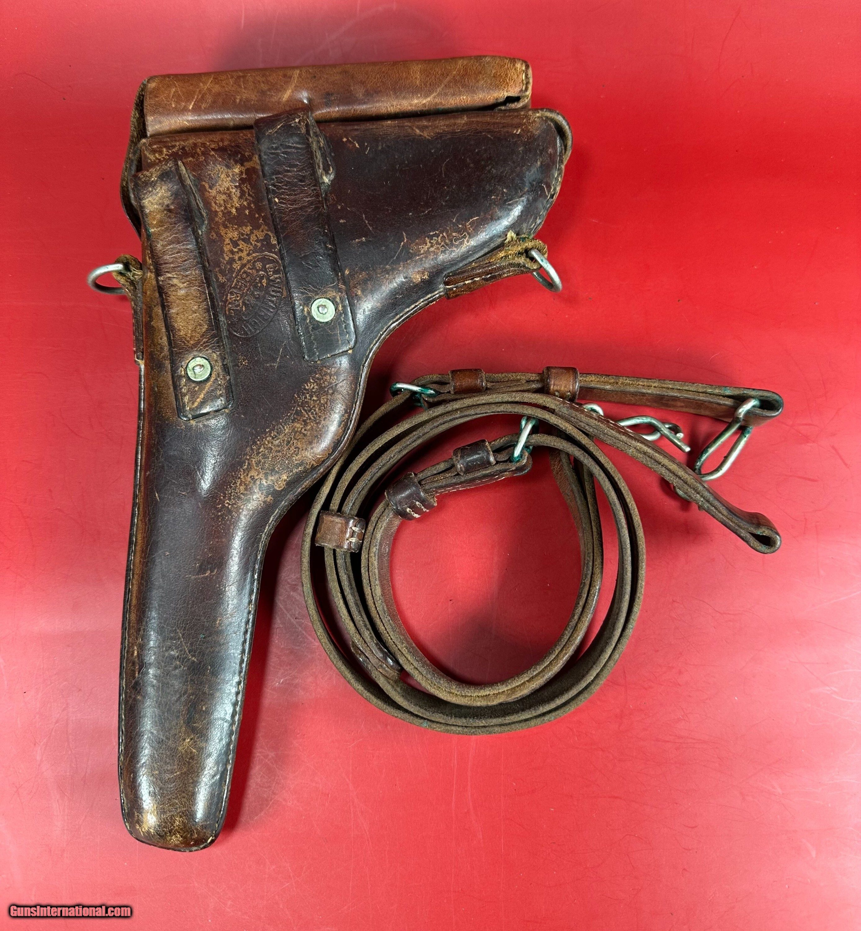 Description: For sale an iconic semi automatic pistol 1917 DWM P08 Luger. This is war (WW1 WWI) production and it's German army proofed. The example is in excellent condition. Bright bore with strong rifling. Metal finish is about 98%, wood grips are 97%. All numbers are matching. Action functions the way it should. Full rig includes two magazines with wood bases, luger tool, very rare leather holster with shoulder strap. The Holster is Bern 25 stamped. This gun will make a great addition to any collection. Specifications Model: P.08 Luger ( P08, P 08, P-08, P.08 DWM) Caliber: 9 mm Capacity: 8+1 Barrel Length: 4" Stock/Grips: Checkered wood grips Sight/Optic: Rear V notch groove, Front blade Magazines Included: 2x 8rd mag Layaway and payment plan are available. Handgun Caliber: 9x19mm Parabellum (9mm Luger, 9x19mm NATO) Price: $2,599.00 Shipping: $39.00 Contact Seller |