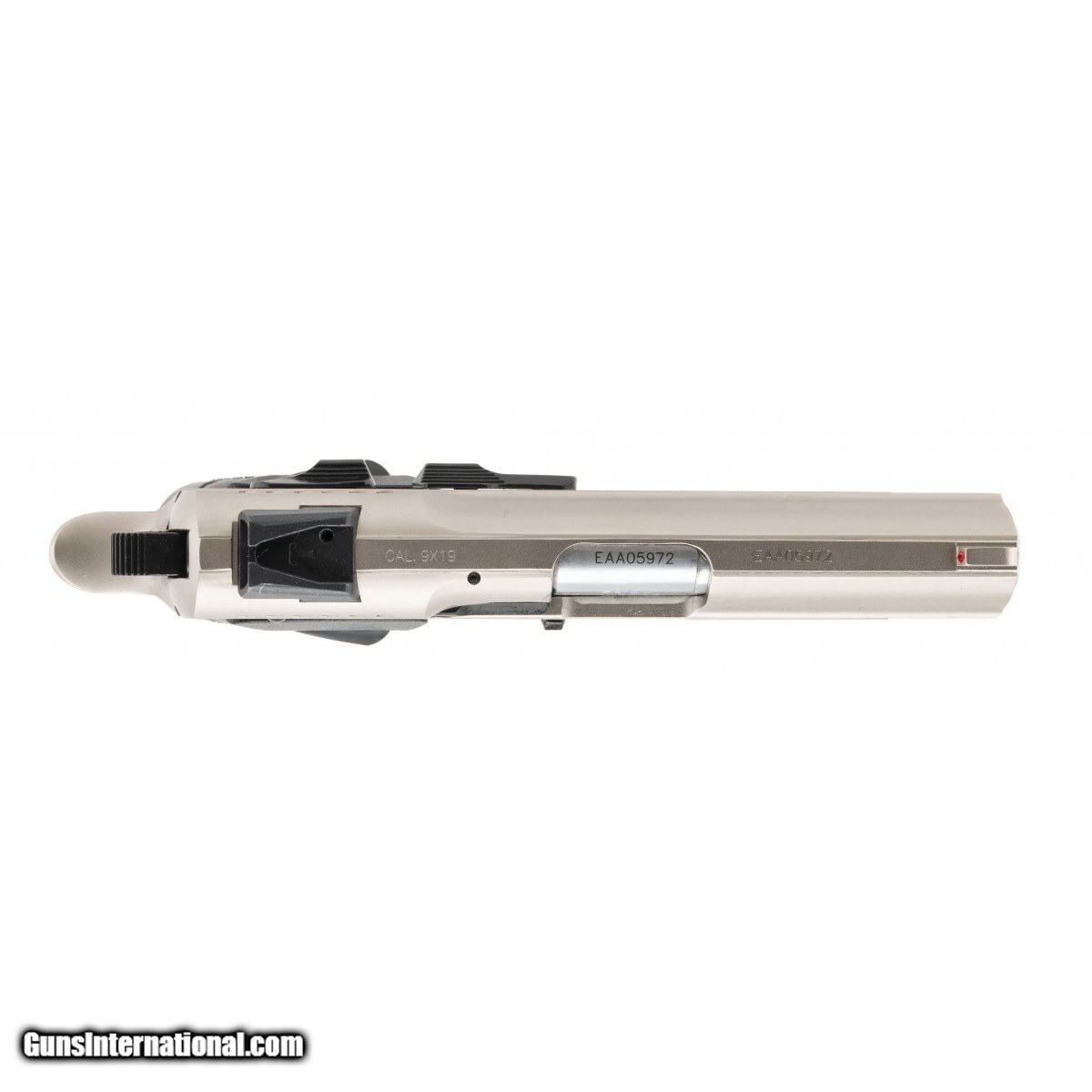 Semi-auto metal frame pistol with a 4.5"" barrel, a thumb safety and, fixed sights. Overall in excellent condition, comes with the box.