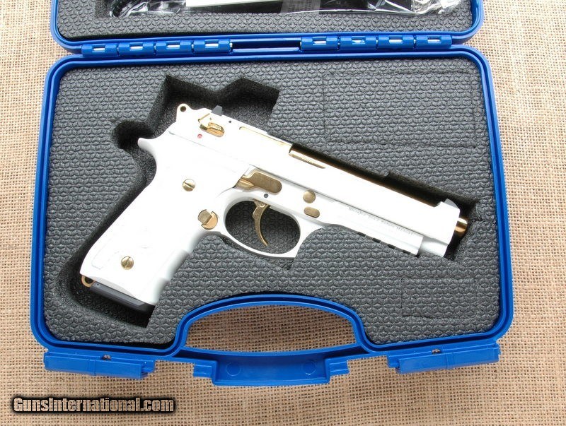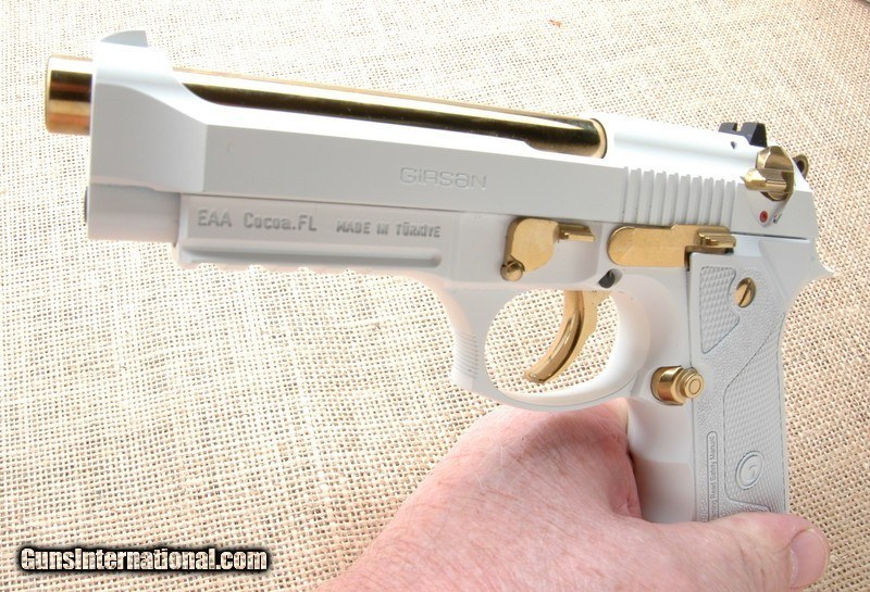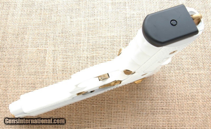 Description: So.... what is this, Star Wars? I don't know, but it is a really good cerakote job. Barrel and small parts are gold colored and equally well done. It comes in the box as shown, with one 18 round magazine. $45 shipping to the lower 48, 3% surcharge for using a CC. If you choose to pay with a personal check, we will hold the item for up to 10 days to make sure that it clears. Please expedite such pymts as we will hold an item on your word for 5 days. SOLD Handgun Caliber: 9x19mm Parabellum (9mm Luger, 9x19mm NATO) |