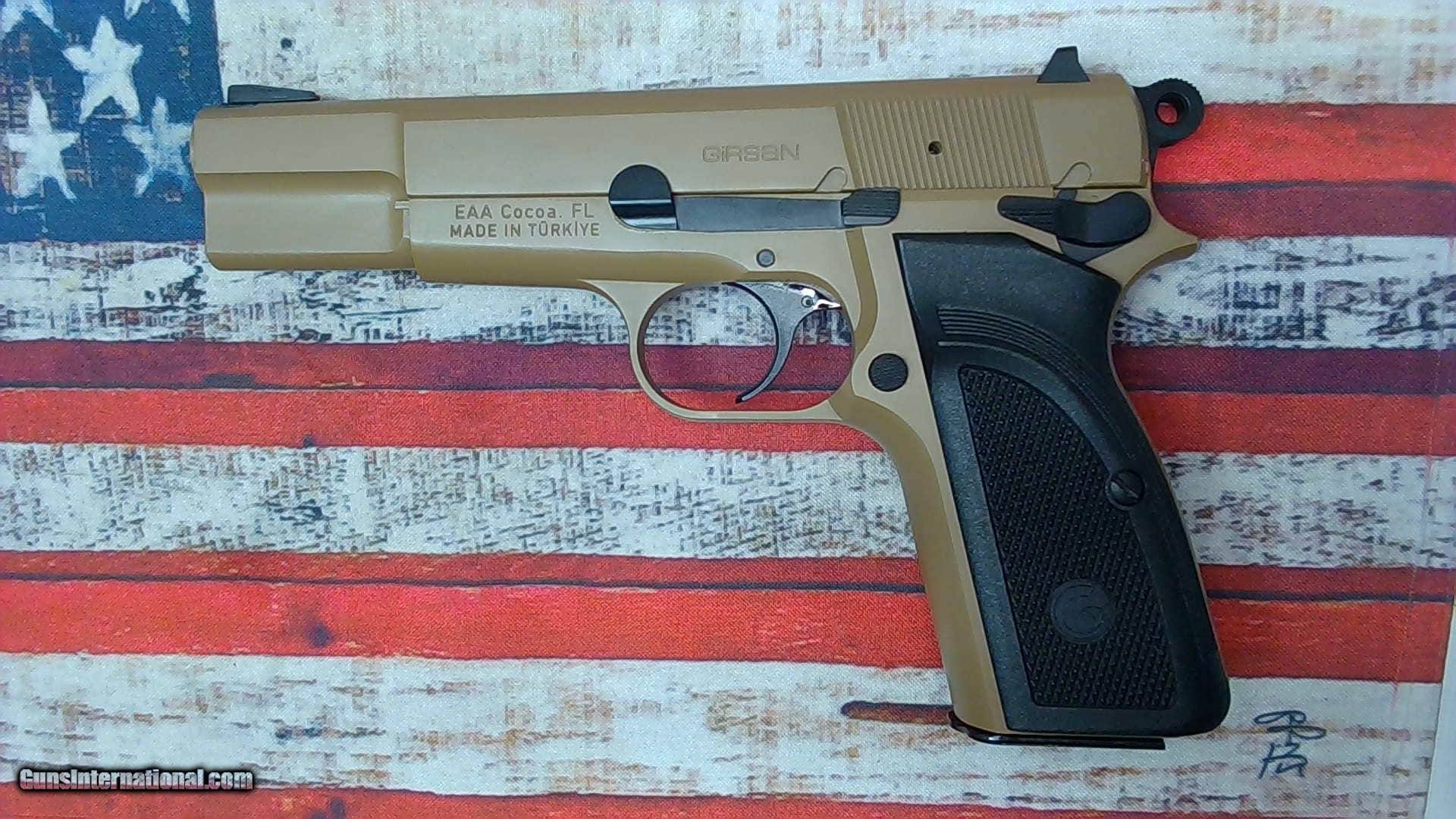 Description: Guns Listing ID: 863970 This Girsan is in \"like new\" condition. It has been shot, but not very much! No scratches, no holster wear, it‚‚s in great shape. This firearm would be good for a day at the range, home protection, or as your personal carry. Girsan‚‚s MCP35 is a military handgun known for its accuracy and reliability. This 9mm has a 4.87-inch barrel and comes with one 15-round magazine. Finished in flat dark earth, this handgun has checkered black polymer grips, a serrated FDE steel slide, a dovetail front sight, and an adjustable rear sigh SOLD Manufacturer: EAA Model: GIRSAN MCP35 Caliber Info: 9MM LUGER (9X19 PARA) Condition: Used - Non-Certified Barrels: 4.87 BARREL Finish: FLAT DARK EARTH |
