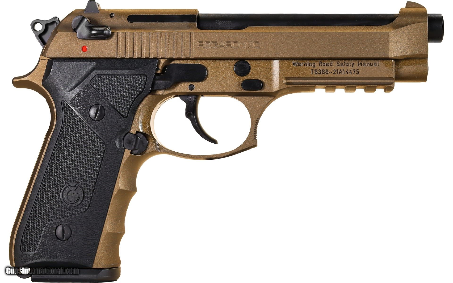 Description: Guns Listing ID: 1107647 Safety: Ambidextrous Thumb Safety Chamber Length: 0 in. Frame Finish: Burnt Bronze Front Sight: Fixed Rear Sight: Fixed Grips: Plastic Features: Finger Grooved Front Strap Accepts Beretta 92 Magazines Finish: Brown Firing System: External Hammer Frame Material: Alloy Magazine Type: Detachable Box Magazine Trigger Guard: Alloy Barrel Configuration: Single Barrel Twist: 1-16 Rifled Barrel: Yes Forend Rail: Accessory Rail Minimum Pull Length: 0 in. SOLD Manufacturer: EAA Model: Girsan Regard Caliber Info: 9MM LUGER (9X19 PARA) Condition: Used - Non-Certified Barrels: 4.9 BARREL Finish: BURNT BRONZE/BLACK |