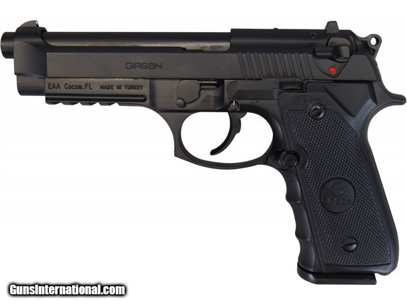 Description: BRAND NEW IN THE BOX AND READY TO SHIP! BUY IT NOW!! Manufacturer: European American Armory / GiRSAN Model: GiRSAN Regard MC SKU: 390080 Caliber: 9mm Capacity: 18 Rounds Barrel Length: 4.9" Under Barrel Accessory Rail Finish: Matte Black Grips: Black Synthetic Sights: Fixed - Front, Drift Adjustable - Rear Ambidextrous Safety Overall Length: 8.6" Weight: 2.15 lbs A few years ago the US Military adopted the Beretta® 92. Now Girsan has perfected this design. Girsan Regard has been the preferred side arm of the Turkish Military and law enforcement for many years and is a NATO approved sidearm. The Regard is so good, that the Vice President of EAA uses this pistol as his everyday carry. Think about it, a guy that has many pistols to choose from carries the Girsan Regard. We do not have to say much more. The Regard 92 grip is the same size as the Beretta 92, but with finger grooves on the front and vertical serrations on the back to help you get a grip in extreme conditions. Additionally, the left-side safety lever has been slightly enlarged to aid in manipulation, and the double action trigger pull is actually a little smoother than that of the original. Best of all, the Regard 92 is compatible with Beretta 92 magazines.