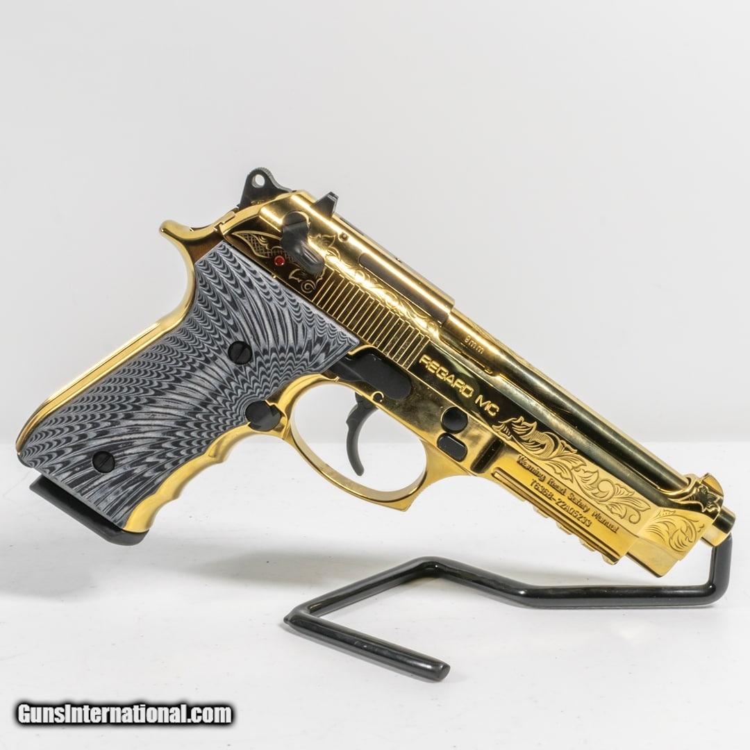 Description: Guns Listing ID: 820862 Manufacturer: EAA Model: Girsan Regard Condition: Excellent Caliber: 9mm Luger Action: Semi-Auto Barrel Length: 4.9\" Capacity: 18-rd Features: Gold finish Inventory: Includes leather box/case, (1) 18-rd mag, cleaning brush, cable lock. -This item is on consignment; the price is fixed as the customer determines the price. -Please be aware that we have not test fired this gun. Unless otherwise stated, expect this firearm to fire and function safely. -All sales are final. Any discrepancies between the gun and our description should be communicated to us prior to the transfer. -Returns will not be accepted after the transfer process has been submitted or completed. SOLD Manufacturer: EAA Model: GIRSAN REGARD Caliber Info: 9MM LUGER (9X19 PARA) Condition: Used - Non-Certified Barrels: 4.9 BARREL Finish: GOLD PLATED |