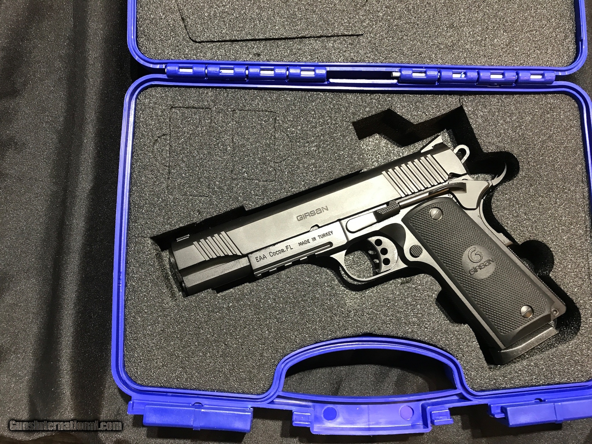 Description: Guns Listing ID: 60384 Much more than just another 1911 the MC1911 is available in several premium configurations such as Match or Optics Ready models without a premium price. FEATURES: Front Strap and Mainspring Housing Checkering; Ambidextrous Safety; Full-size 1911; Trigger Pull 3.5 To 4 Lbs; Novak-style Rear Sight; Extended Beavertail; Steel Frame and Slide; Laminate Grips; Skeletonized Hammer; Deep Slide Serrations; Accessory Rail; 45ACP 8+1 Capacity FINISH: BLACK SOLD Manufacturer: EAA Model: MC1911S Caliber Info: .45 ACP Condition: new Barrels: 5 BARREL Finish: BLACK |