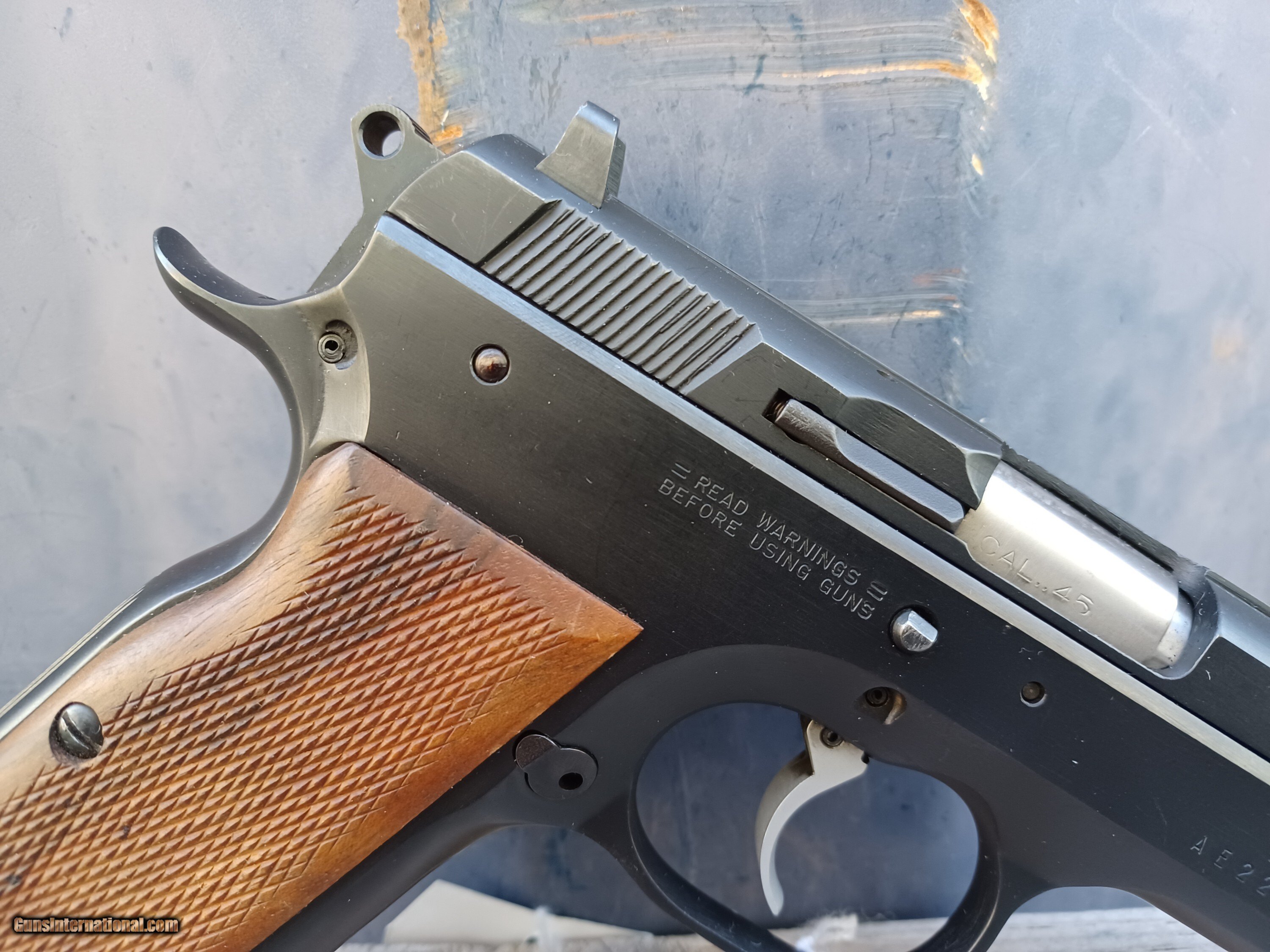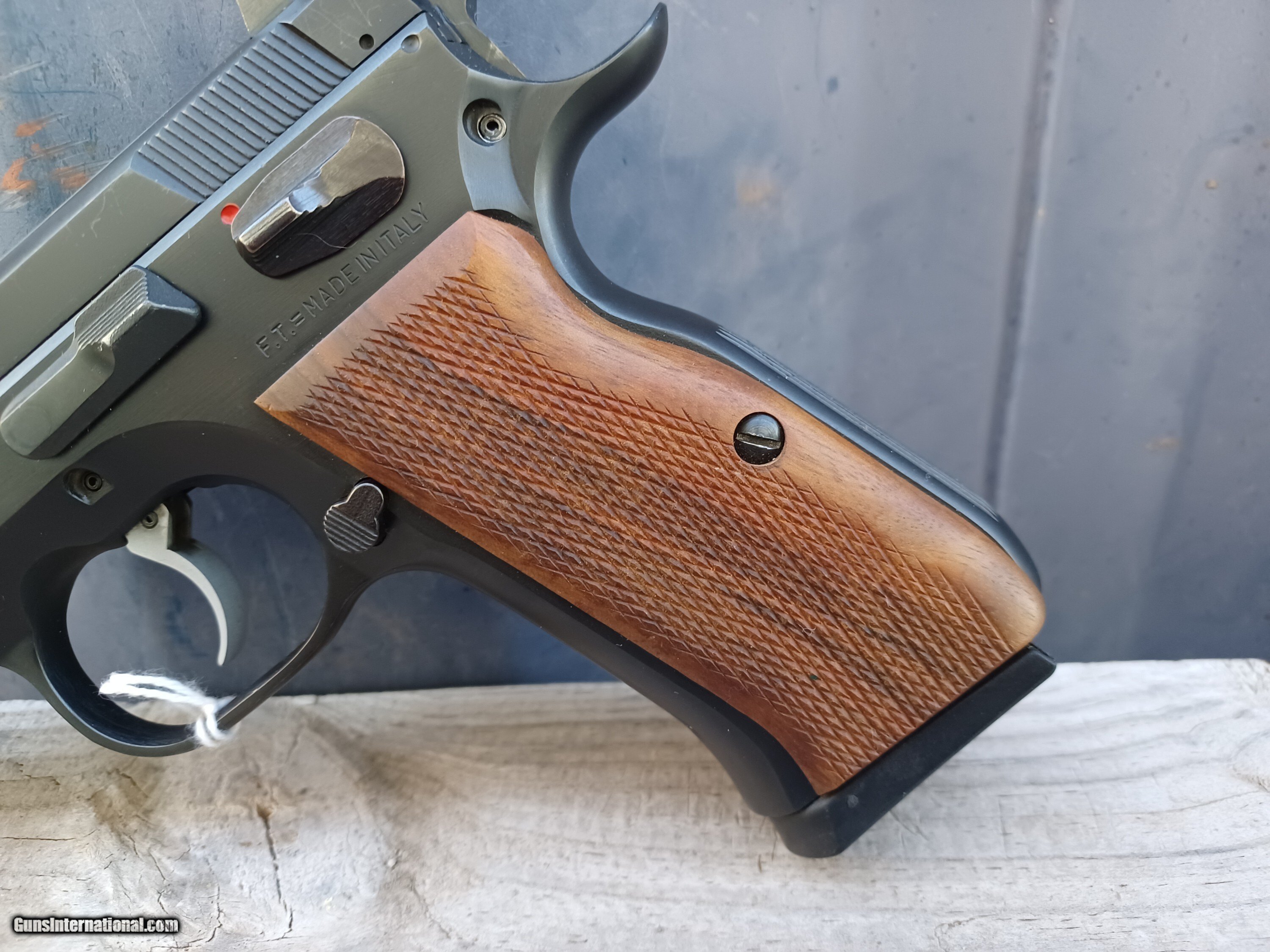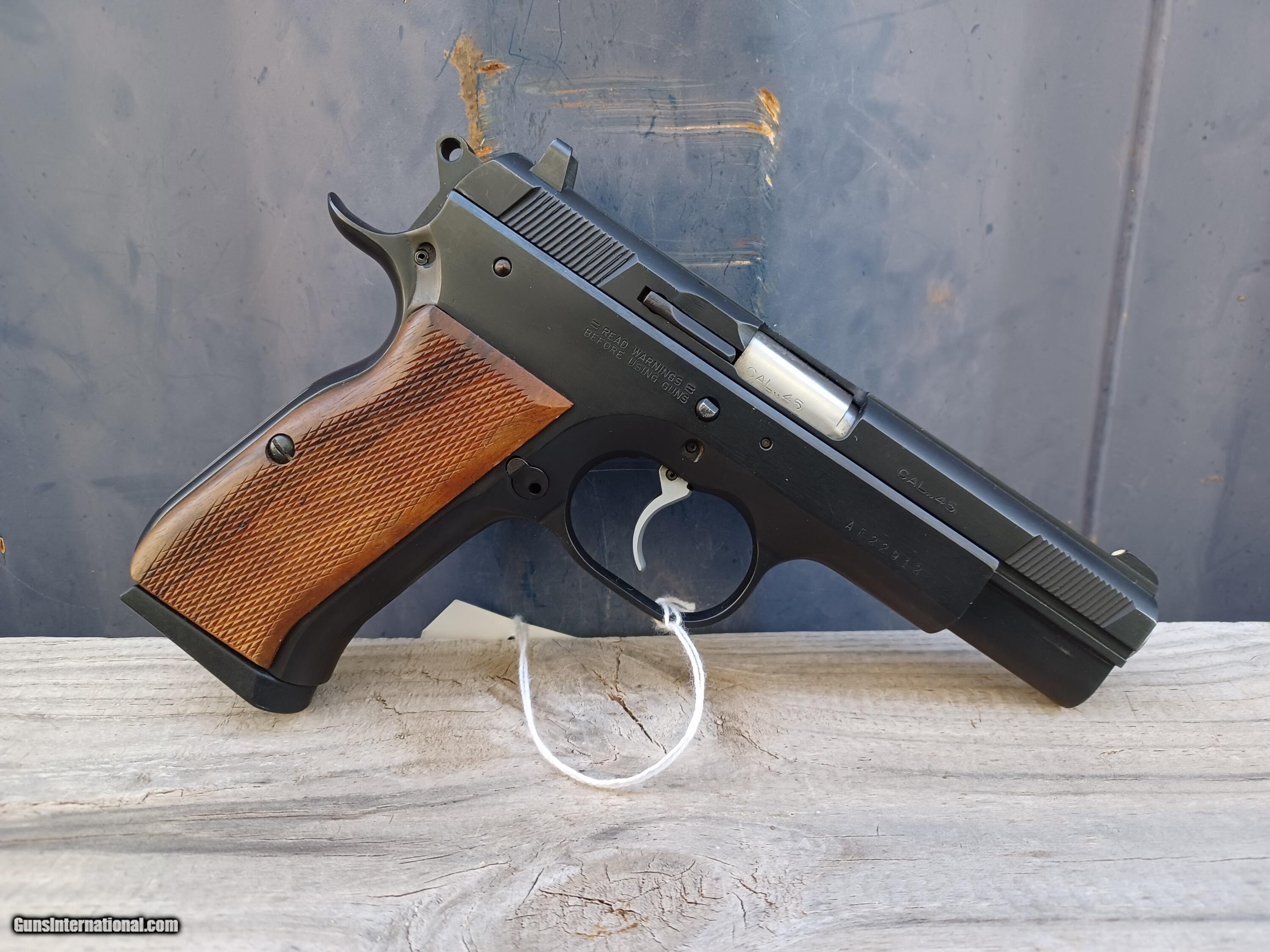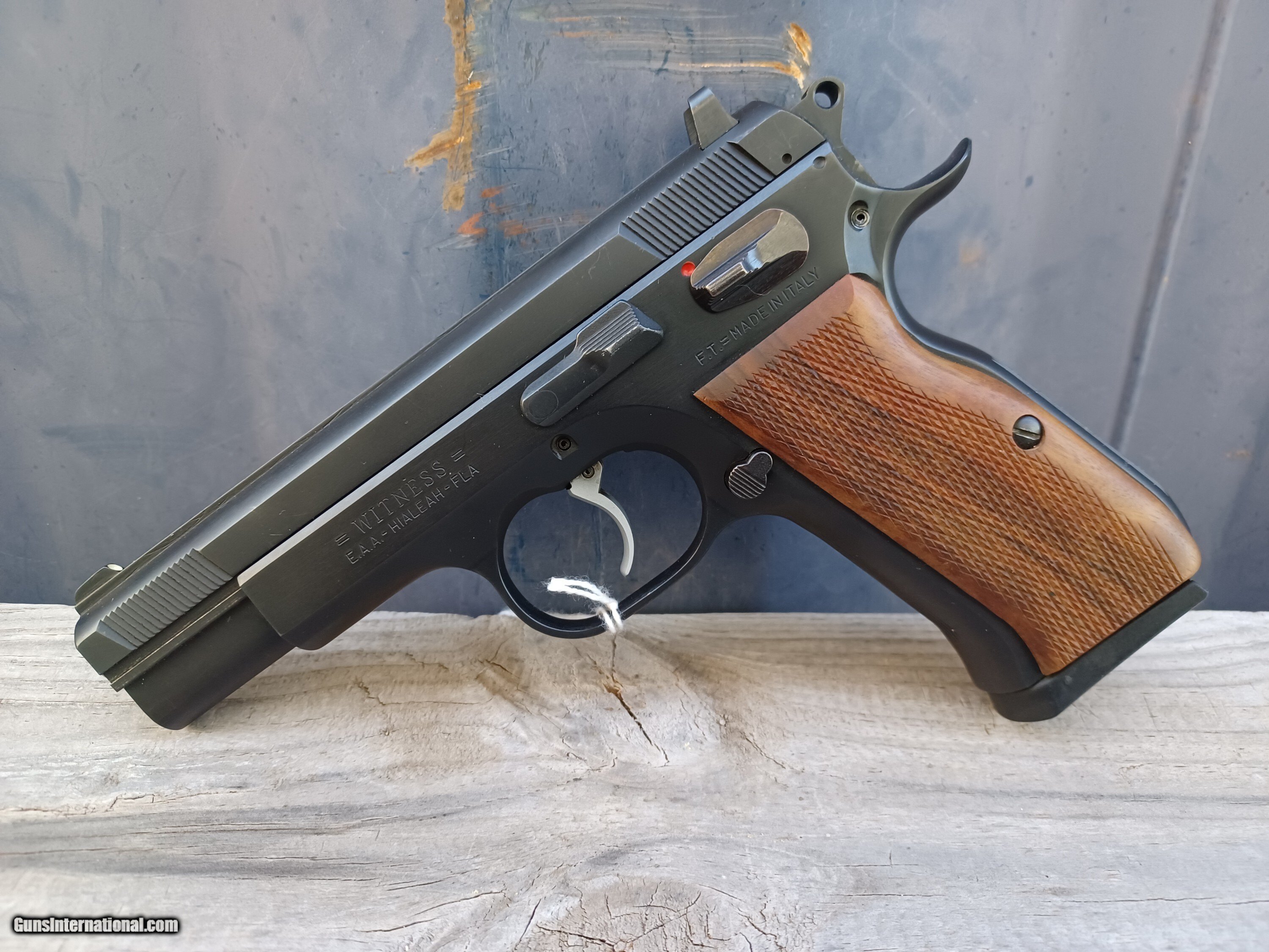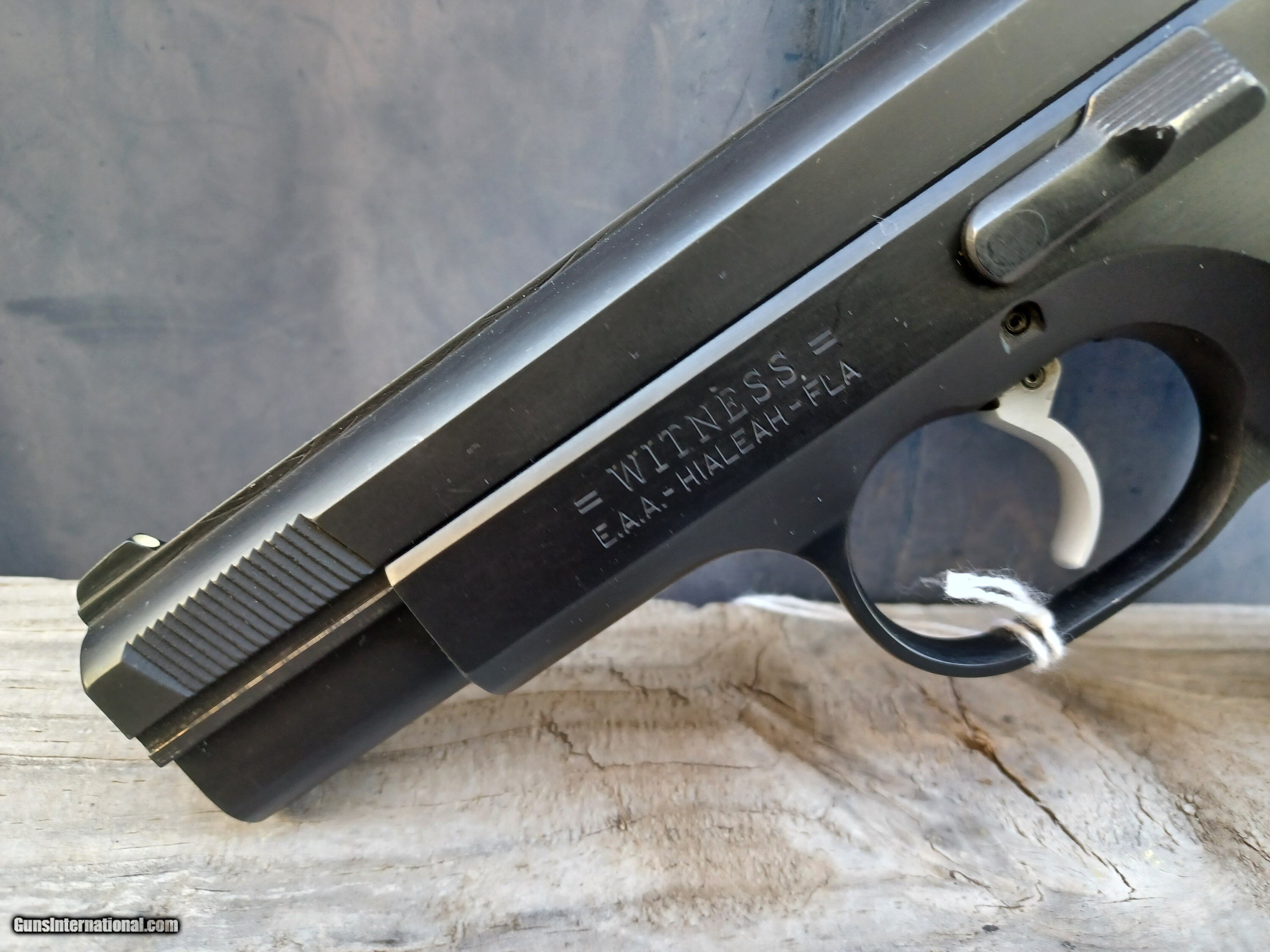 Description: Here is a very comfortable pistol. It is an EAA (Tanfoglio) Witness chambered for 45 ACP. This pistol comes with (1) 10 round magazine.These are very easy to shoot and very comfortable. They are modeled after the famous CZ-75 designs and are fantastic quality pistols. The 45 ACP is a hard to find configuration. Thanks for looking! $25 shipping Please call with any questions. Please click the BUY NOW button to purchase this item. We are required to charge 8.25% for Texas residents. There is a 3.5% fee if paying by credit card. SOLD Handgun Caliber: .45 ACP (.45 Auto) Manufacturer: EAA Model: Witness Serial Number: AE22912 Barrel Length: 4.5 Condition: Very Good Metal Condition: Very Good Wood Condition: Very Good Bore Condition: Excellent |