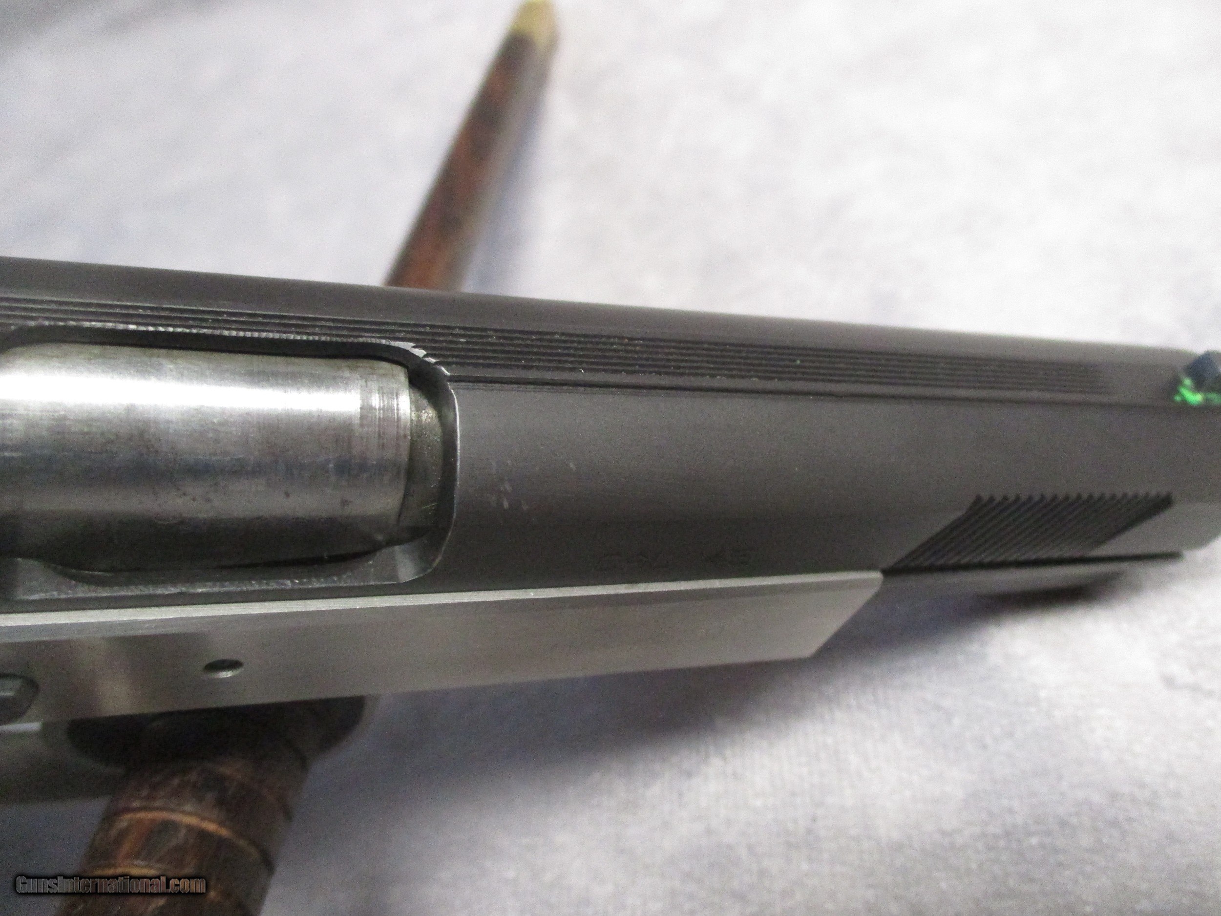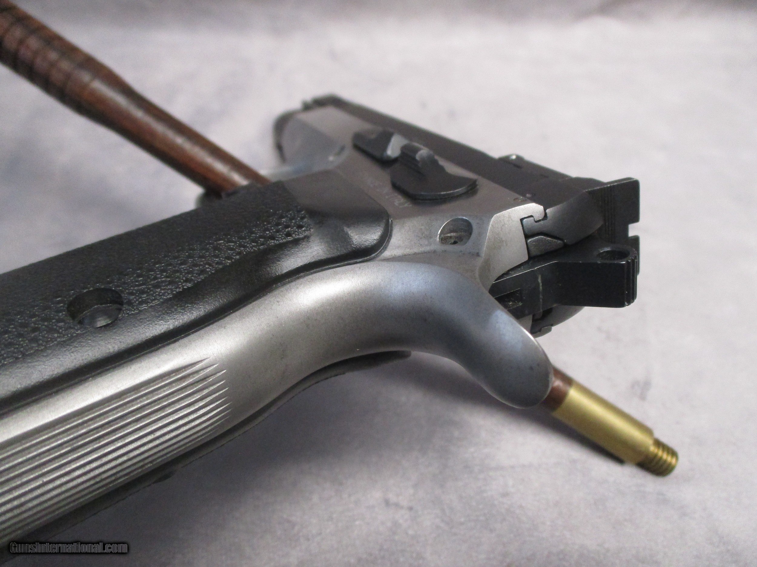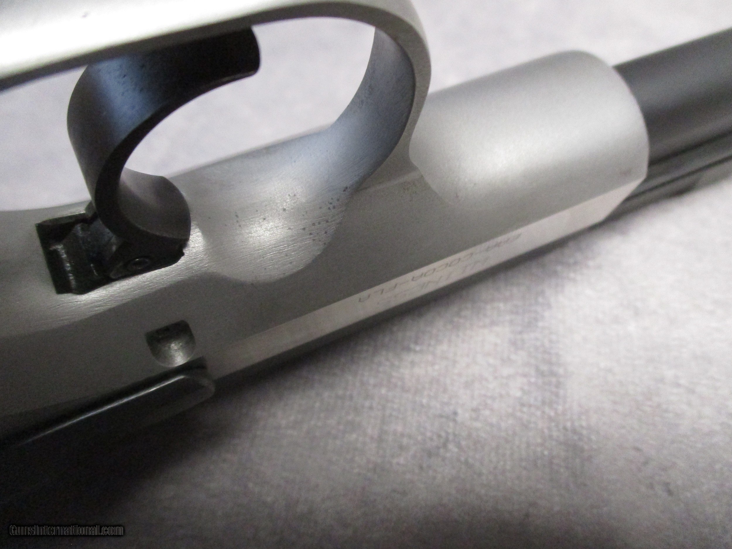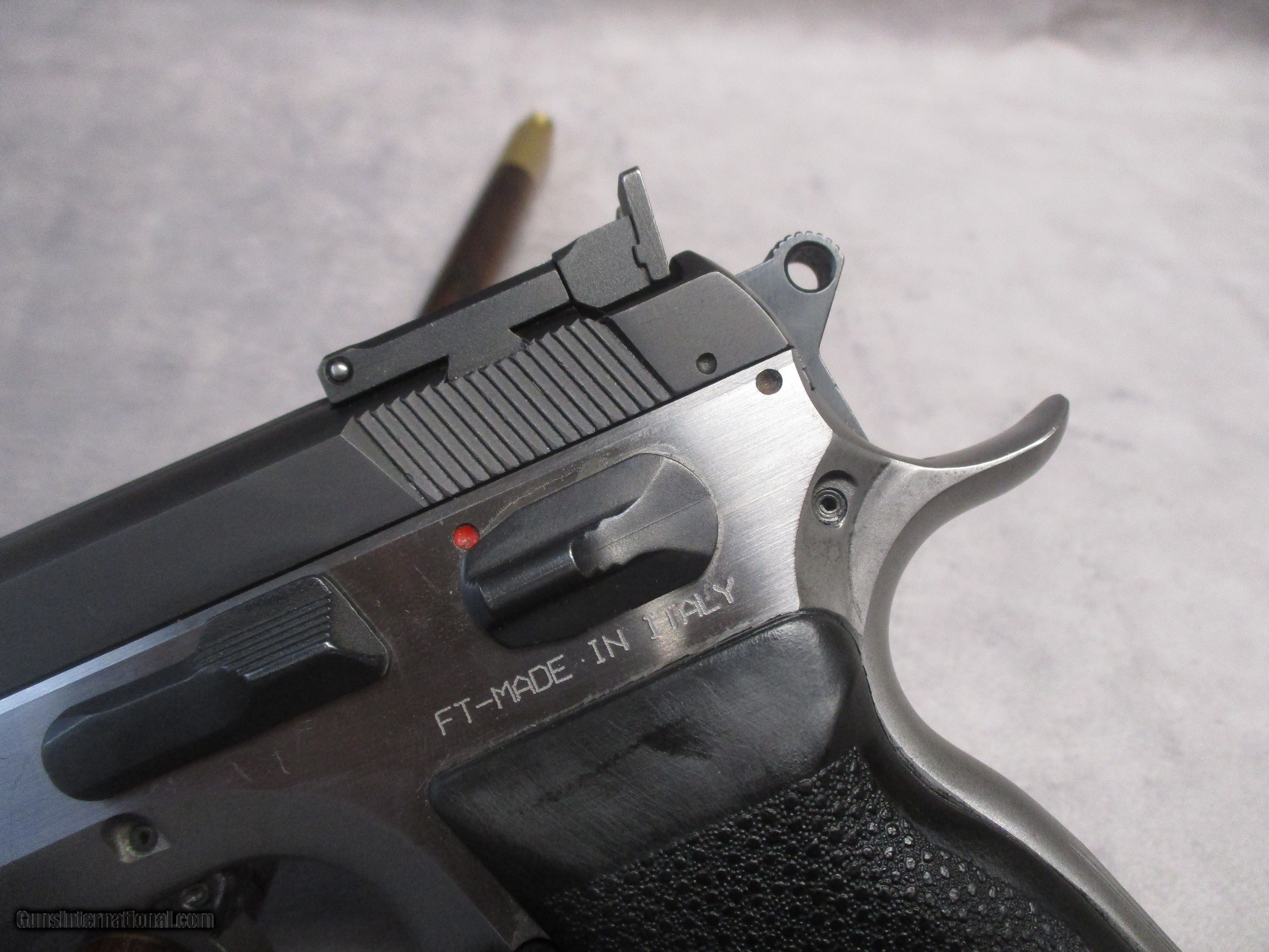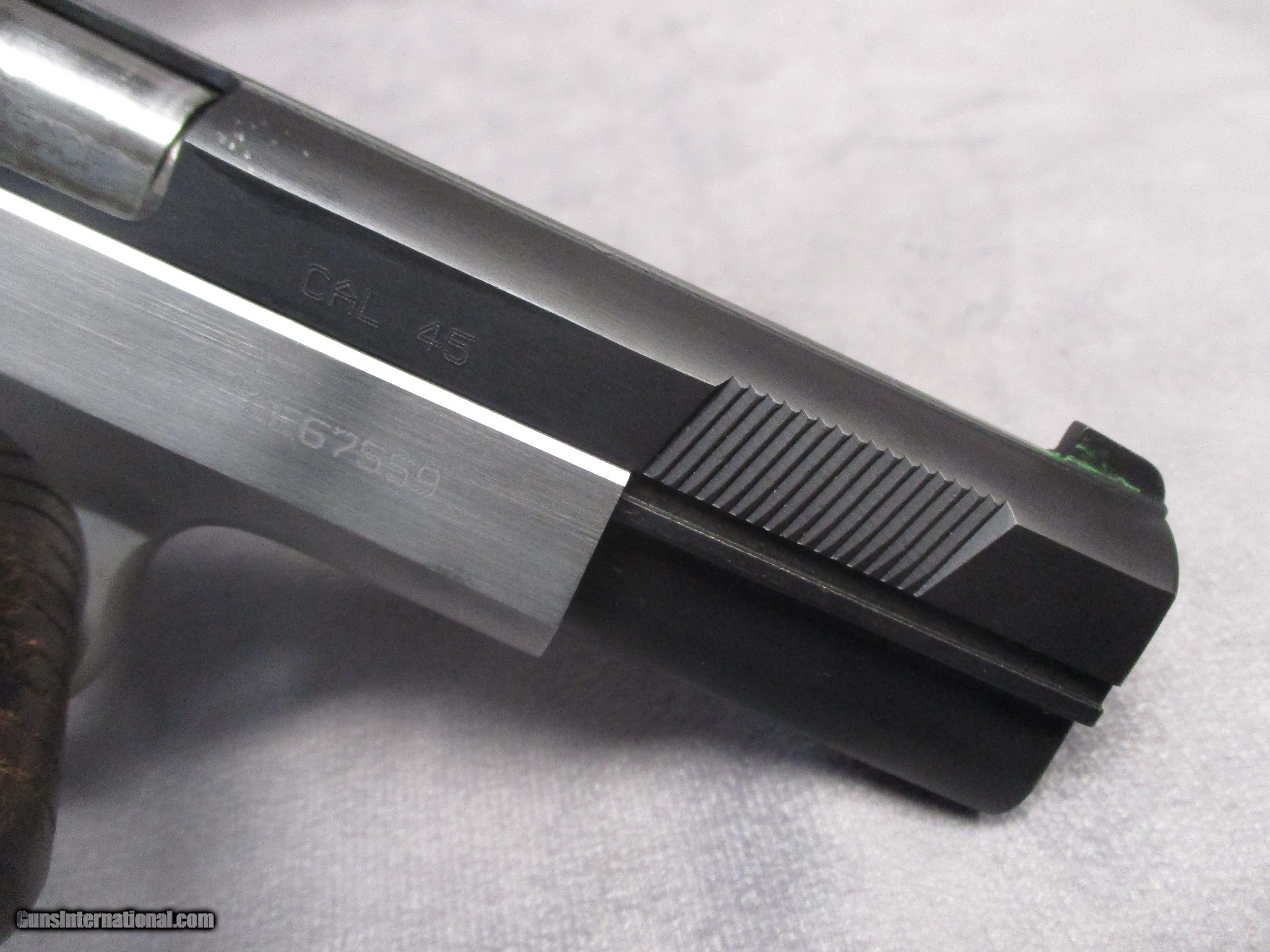 Description: The EAA/Tanfoglio Witness is an excellent pistol based on the famous CZ 75. This example sports a duo tone finish, fully adjustable rear sight, rubber grips, and is chambered for the legendary .45 ACP, well-known for its stopping power. This example is used, and exhibits fairly light pitting on the frame but not on the slide. The bore is in excellent shape, if a little dirty, with no rust or pitting. Mechanically, the Witness is in excellent shape. It comes with three ten-round magazines. Please note that this the DA/SA version of the pistol. It is NOT the SA only Match version despite the similar appearance. There is no factory box or manual though it does come with a small hard case. As it is based on the CZ 75, the Witness is a very accurate and reliable pistol. In fact, Tanfoglio pistols based on the Witness have been utilized by some of the world’s top competition shooters. As an example, the I.P.S.C. World and European Championship has seen seven consecutive victories by Tanfoglio’s competition models. This pistol would make an excellent target pistol but can double as a home-defense gun very easily. SOLD Handgun Caliber: .45 ACP (.45 Auto) Manufacturer: EAA/Tanfoglio Model: Witness Serial Number: AE67559 Bore: Rifled Ejectors: Auto-ejection Condition: Good Barrel Type: Standard Action: Semi-Auto, Short recoil, Locked Breech Triggers: DA/SA crescent moon trigger Stock: Rubber grips Finish: Blued (slide), Stainless Steel (Frame) Sights: Fully adjustable rear sight, integral front sight, sight radius 6.9375 inches (176 mm) Extras: 2 spare mags for a total of 3 Case: Hard case |
