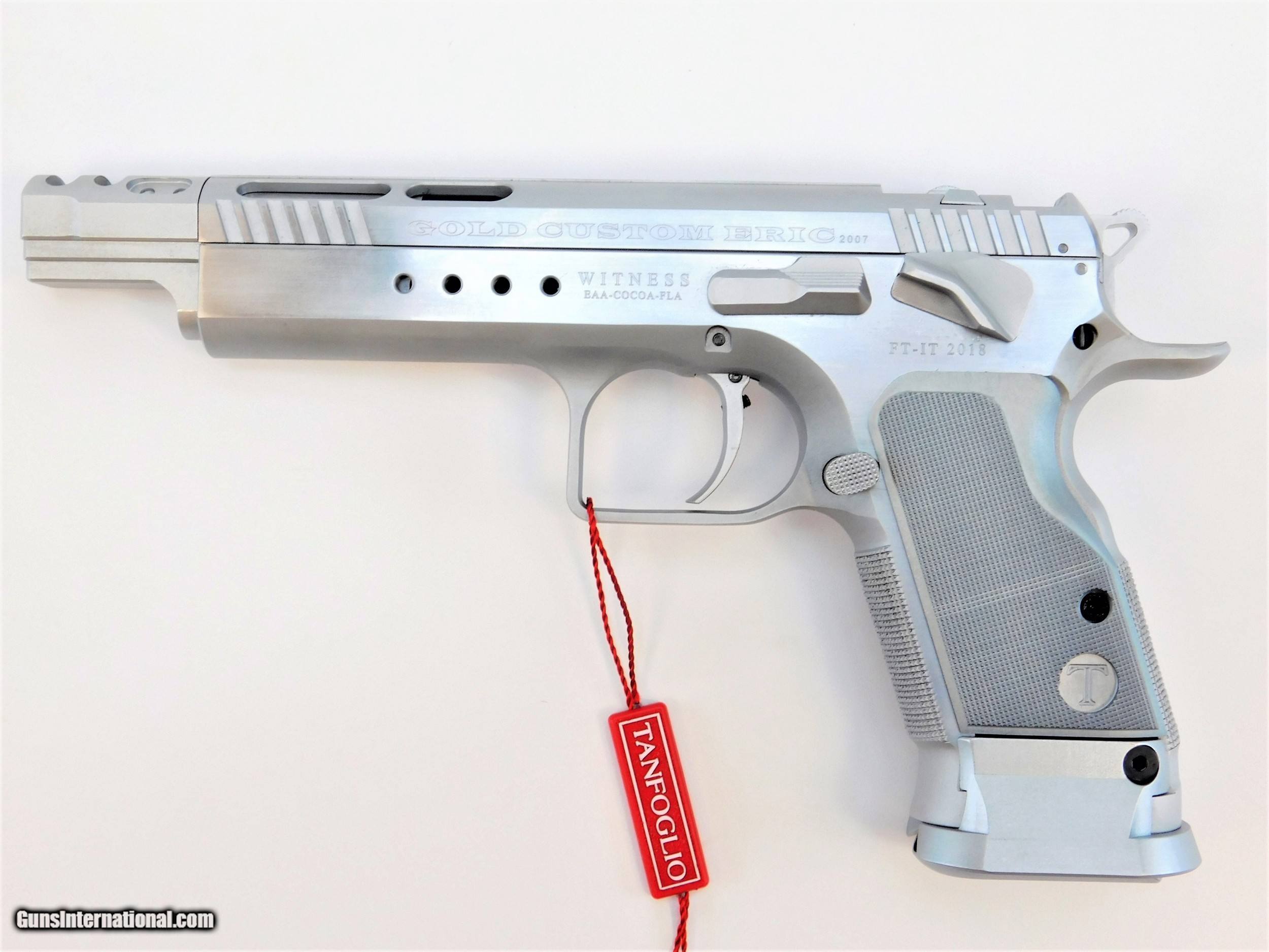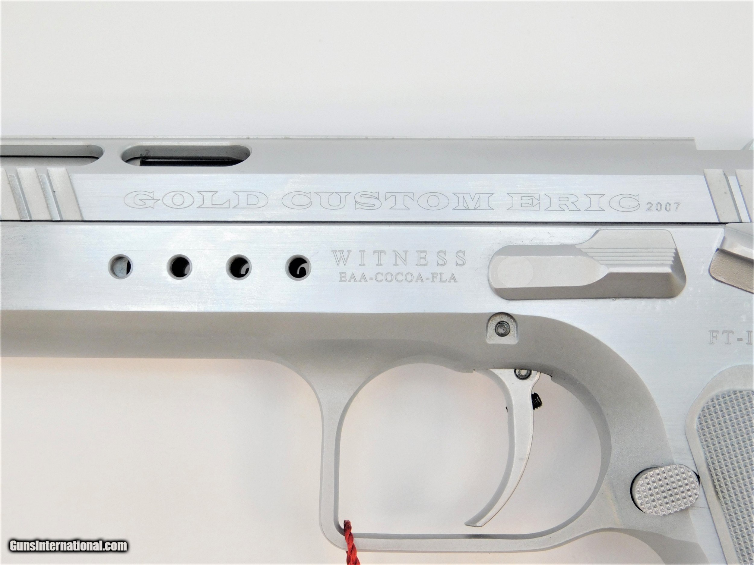 Description: BRAND NEW IN THE BOX AND READY TO SHIP! BUY IT NOW!! Manufacturer: EAA (European American Armory Corp.) Model: Tanfoglio Witness Elite Gold SKU: 600095 Caliber: .38 Super Action: Single Barrel Length: 5.25" Frame: Steel, Chrome Finish Capacity: 17 Rounds Overall Length: 10.5" Weight: 41 oz Grips: Aluminum Sights: None Tanfoglio Witness Elite pistols have won almost every major competition pistol match in the world at one time or another. There is a reason for this. They work and shoot where you point and they are so comfortable to use so you look forward to practice. Try a Witness Gold Team Limited Match or Stock and see how much fun it can be to Shoot a Competition match and win. From shot to shot repeatability fast target acquisition comfort and reliability the Tanfoglio Witness Elite is just hard to beat. Comes in hard case with 2 barrels, one with single port comp and the other with popples holes and 6 port comp, cleaning tools and 2 additional recoil springs. KNOW YOUR LOCAL AND STATE LAWS!! ORDERS WILL ONLY BE ACCEPTED FROM US RESIDENTS OF THE LOWER 48 STATES, ALASKA AND HAWAII. OUR FFL CLASS DOES NOT ALLOW FOR THE EXPORT OF FIREARMS, THEREFORE WE CANNOT SHIP OUT OF THE US. IF YOU ARE INTERESTED IN PURCHASING THIS ITEM, PLEASE COMPLETE YOUR ORDER BY REFERRING TO THE "SELLER'S INFORMATION" ABOVE. SOLD |