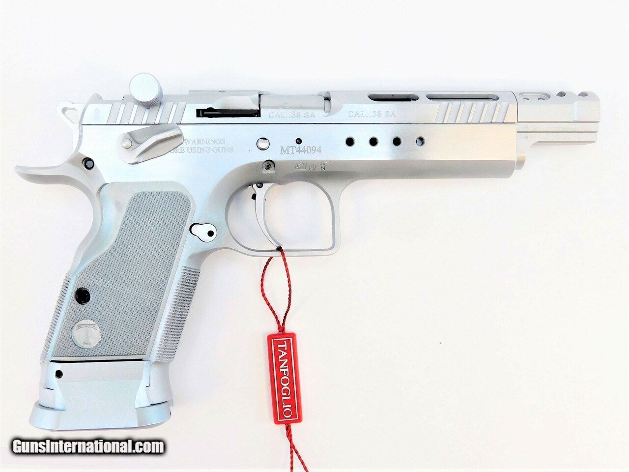 Description: Manufacturer: EAA (European American Armory Corp.) Model: Tanfoglio Witness Elite Gold Team SKU: 600095 Caliber: .38 Super Barrel Length: 5.25" Ported Frame: Competition Finish: Chrome Capacity: 17 Rounds Overall Length: 10.5" Weight: 2.56 lbs Grips: Aluminum, Checkered Front and Backstrap Sights: Adjustable All items are factory new in box unless otherwise stated. Based on the information available to us, the above specifications describe this item to the best of our knowledge. For further information, please contact or visit the manufacturer's . SOLD |