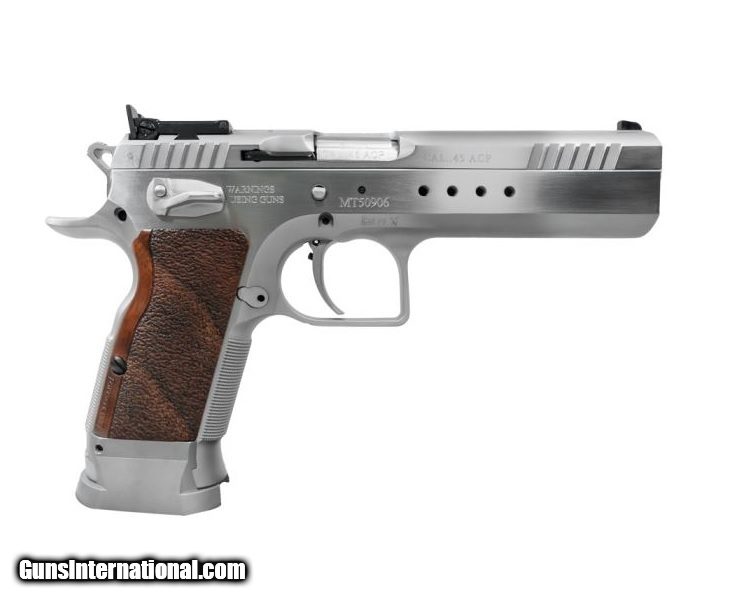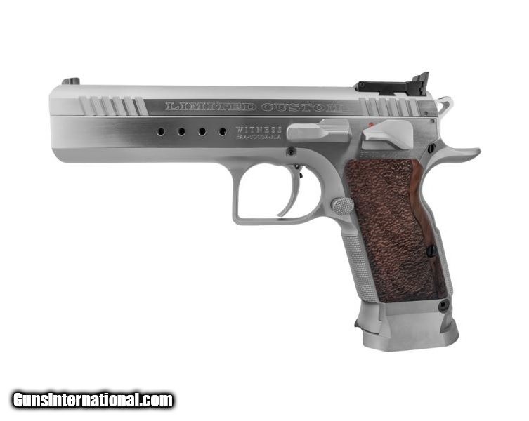 Description: Manufacturer: EAA (European American Armory Corp.) Model: Tanfoglio Witness Elite Limited SKU: 600340 Caliber: .45 ACP Action: Single Barrel Length: 4.75" Frame: Steel, Chrome Finish Grips: Walnut Capacity: 10 Rounds Overall Length: 9" Weight: 2.81 lbs Sights: Adjustable All items are factory new in box unless otherwise stated. Based on the information available to us, the above specifications describe this item to the best of our knowledge. For further information, please contact or visit the manufacturer's . SOLD |