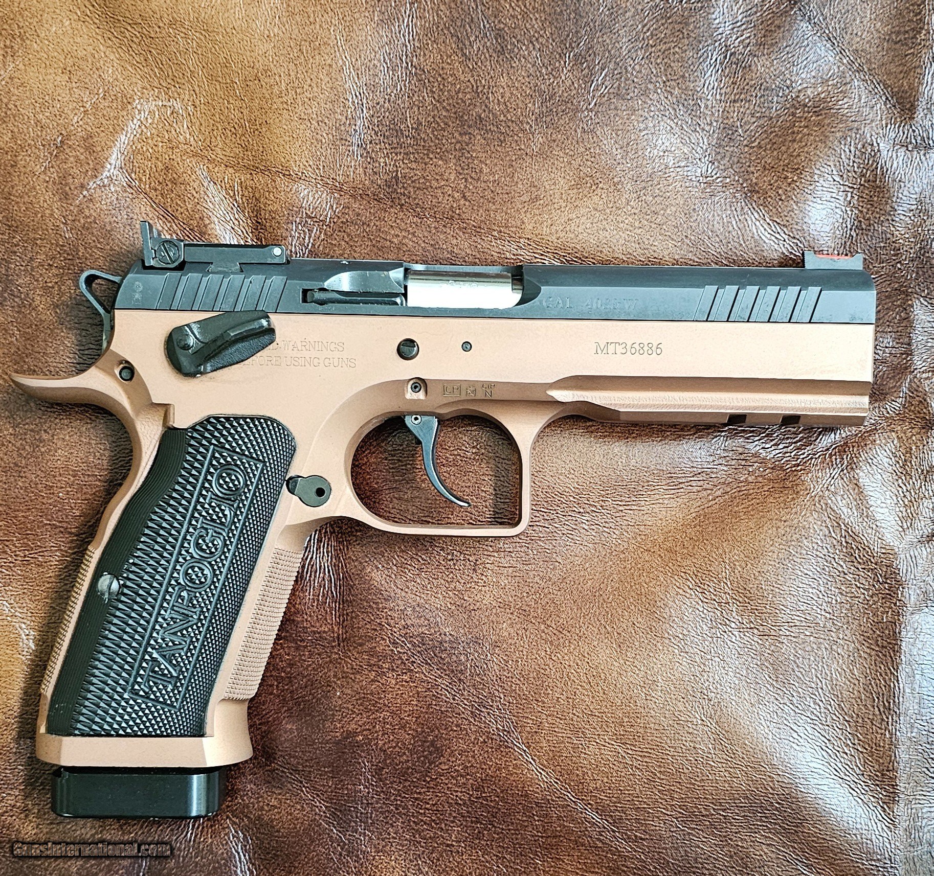 Description: New in box, Italian made, DA/SA, 4.75" barrel, 40 S&W caliber, 2 tone ceramic finish, Aluminum grips, comes with Four 14rd mags, clening kit, extra parts, user manuals and its factory lockable case with matching serial number,. SOLD Handgun Caliber: .40 Smith & Wesson (.40 Auto, 10 x 21 mm) Manufacturer: EAA Model: Tanfoglio Serial Number: MT36886 Barrel Length: 4.75 Condition: Excellent Metal Condition: Excellent |