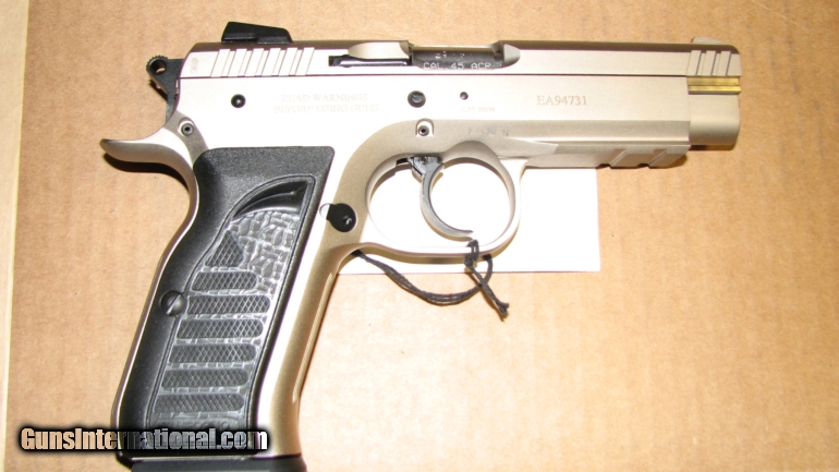Description: THIS EAA TANFOGLIO WITNESS IN 45 ACP IS NEW IN ORIGINAL BOX, COMES WITH ONE MAG. NICKEL FINISH - STEEL FRAME SHIPPING CHARGE IS 30.00 SOLD |