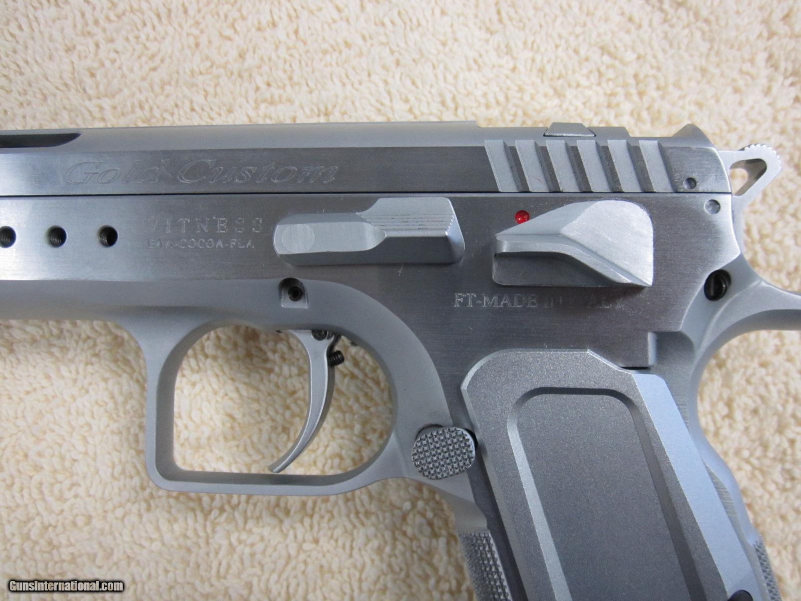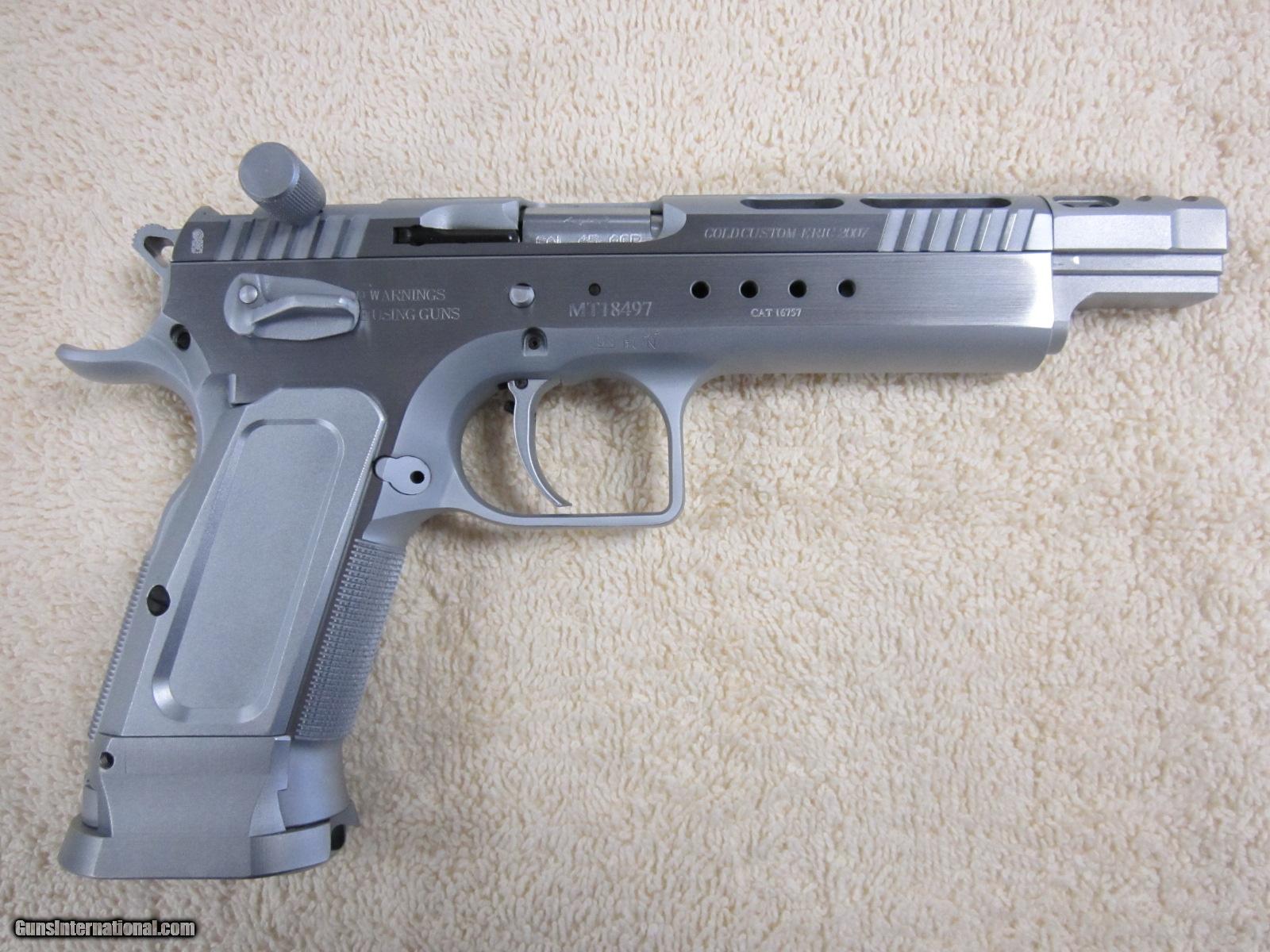 Description: This is a new in the case EAA Witness Gold .45 AP that comes with 1-10+1 magazine and has a 5.25" 12 Hole Ported Polygonal Barrel as well as a Chrome Finish. One of the Best of the Best. Shipping and insurance is $45.00. SOLD Manufacturer: European American Armory EAA Model: Witness Gold Caliber Info: .45 AP Condition: New Item Location: Parker Az.. |