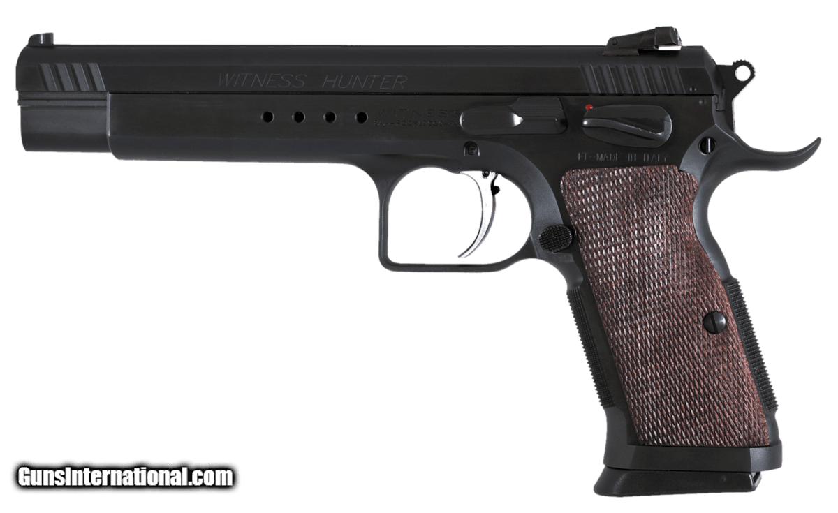 Description: Guns Listing ID: 49766 The EAA Witness Hunter is a semi-automatic pistol chambered in 45 ACP or 10mm with 101 and 141 round capacities respectively. The barrel is 6 against an overall length of 10 with a total weight of 46 ounces. A checkered walnut grip non-slip frame and checkered front and back straps ensure a steady grasp for every shot you need to drop wild boar or other game. The Witness Hunter features a Dovetailed front sight and fully adjustable Super Sight as well as being drilled and tapped for scope mounts. Details Caliber 10mm - Capacity 14.1rds - Barrel 6 - Action SA - Frame Steel - Slide Steel - Finish Blued - Grips Wood - Sights Adjustable Rear Drilled and Tapped SOLD Manufacturer: EAA Model: WITNESS HUNTER Caliber Info: 10MM Condition: new Barrels: 6 BARREL |