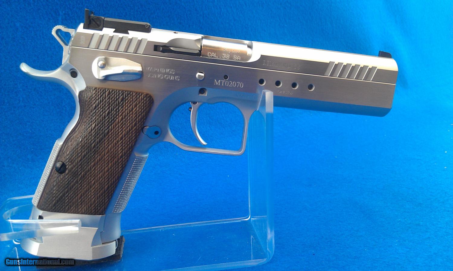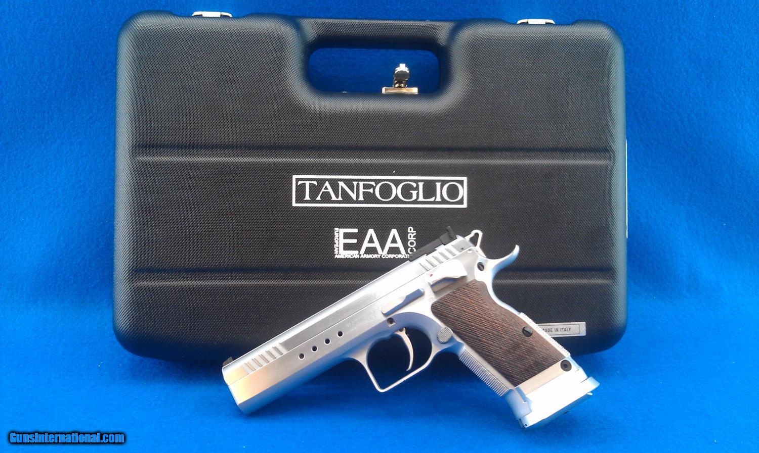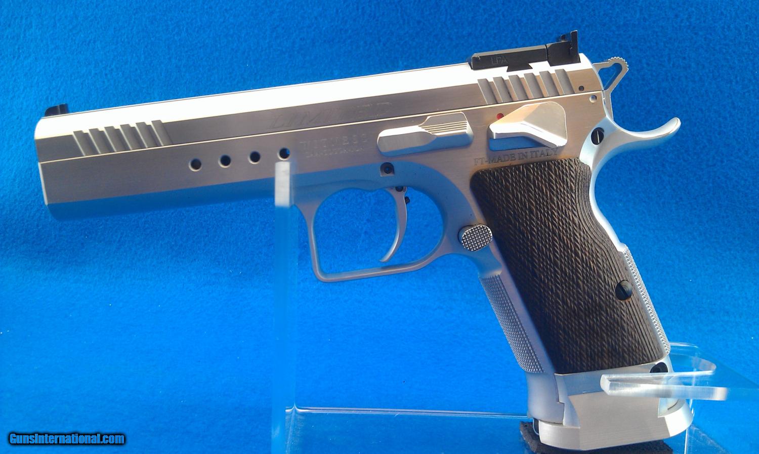 Description: MODEL: WITNESS LIMITED - Competition Frame, Coned Barrel Lock-up; CS=Checkered Front/Back Strap; EAS=Extended Ambi Safety; EBT= Extended Beaver Tail; EMR=Extended Mag Release; EMW=Competition Extended Mag Well; FDC=Full Dust Cover; HSH=Hart Shaped Hammer; PR=Polygonal Rifling; SA-OTS-TA= Single Action Trigger with Over-Travel Stop & Take-up Adjust; SMH=Drilled & Tapped for Scope Mount; S/S=Super Sight, Fully Adjustable; Is like new in the box, never fired, one magazine, two recoil springs, Add 3% for C/C SOLD Manufacturer: EAA Model: WITNESS LIMITED Caliber Info: 38 SUPER Condition: LIKE NEW Metal Condition: 100% Bore Condition: 100% |