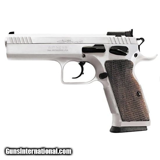 Description: Guns Listing ID: 293821 The EAA Witness Elite Stock II is a semi-automatic pistol chambered in a variety of calibers. Barrels are 4.5 in length against an 8 total length while pistols in this series weigh in at 43 ounces. This pistol features a fully adjustable Super Sight and an over-travel adjustable safety. Designed from the ground up for competition shooting the EAA Witness Elite Stock II features a checkered walnut grip and checkered front and back straps to ensure a steady grasp each shot. Details Action SADA - Caliber .45 ACP - Capacity 101 - Grip Checkered Walnut - Finish Silver - Sights Supersight - Barrel Length 4.5 - Overall Length 8 - Weight 1.4 lb. - You say you want a pistol to do a little plinking. Try a Witness Match or Witness Stock. Go to the range or your favorite shooting place and discover why it is just plain fun to take a Witness out plinking. It is almost like the gun frame molds to your hand. It points and shoots and you hit what you aim for. It is like taking a fine sports car out for a drive. Maybe it is time you enjoyed your plinking more. SOLD Manufacturer: EAA Model: WITNESS Caliber Info: 45 ACP Condition: new Barrels: 4.5 BARREL |
