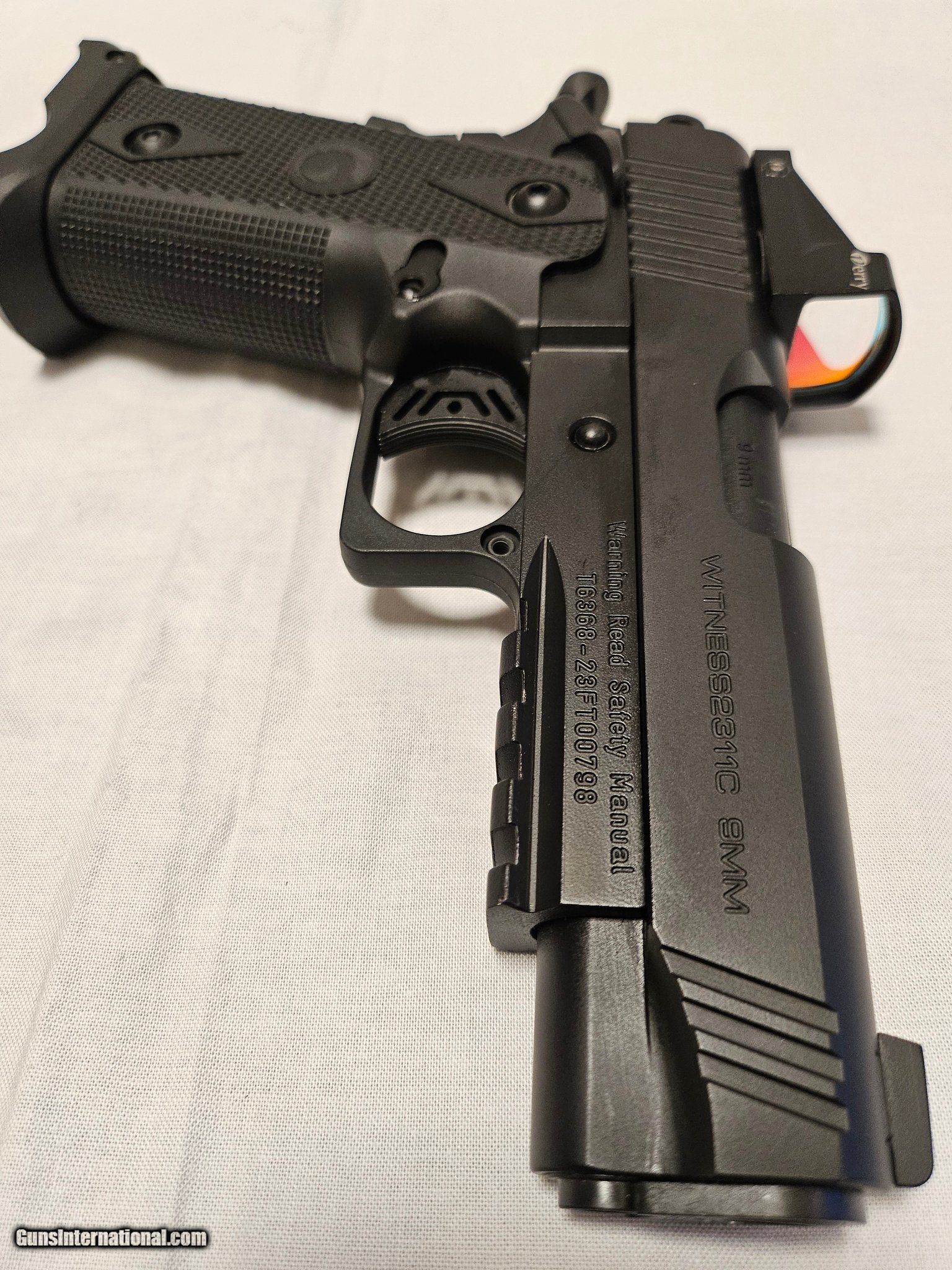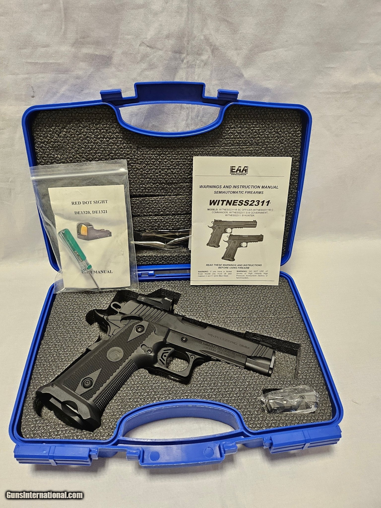 Description: Guns Listing ID: 471275 For Sale: Used Girsan Witness 2311C Condition: Excellent Make: Girsan Model: Witness 2311C Caliber: 9mm Action: Double/Single Capacity: 17 Rounds Barrel Length: 4.4 inches Overall Length: 7.8 inches Finish: Black Material: Steel Includes: 1 magazine Original box User manual Description: The Girsan Witness 2311C is a compact, reliable, and high-performance pistol designed for self-defense or target shooting. This used model is in excellent condition with minimal wear. Known for its ergonomic design, smooth trigger pull, and great accuracy, the Witness 2311C is an excellent choice for those looking for a full-size firearm with modern features. SOLD Manufacturer: EAA Model: WITNESS2311 Caliber Info: 9MM LUGER (9X19 PARA) Condition: Used - Non-Certified Barrels: 4.25 BARREL Action: SEMI AUTOMATIC Finish: BLACK Weight: 1.6 lbs. |