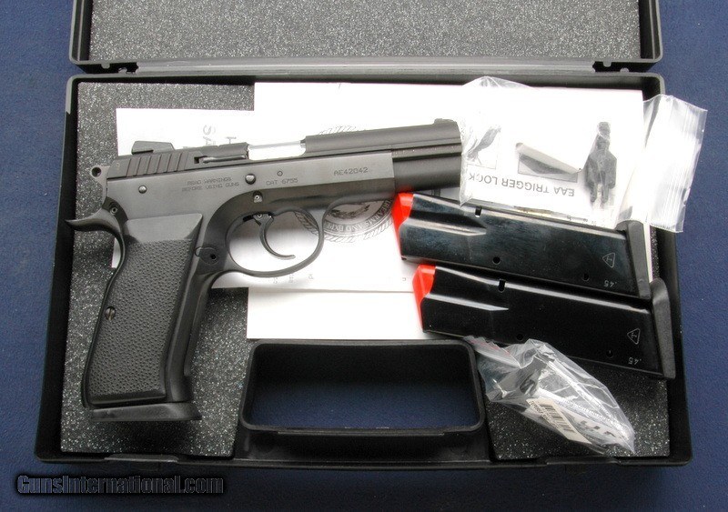 Description: In overall excellent used condition, this pistol is clean as a whistle, has a bright, excellent bore, comes in the factory box with all paperwork, three magazines and safety lock. $40 shipping to the lower 48, 3% surcharge for using a CC. If you pay with a personal check, you can expect us to hold the item for up to 10 days to ensure that the check clears. SOLD Handgun Caliber: .45 ACP (.45 Auto) |