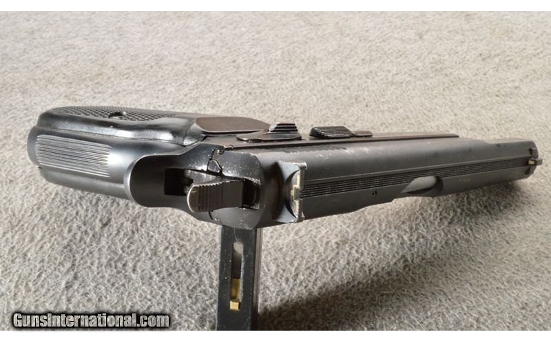 Description: The pistol has a 4.5" barrel and hard rubber grips. The trigger is smooth in both single and double action. All in all a very nice pistol with some finish wear. 9mm Parabellum SOLD Chambers: Semi-auto. Metal Condition: Good to very good with minor wear and small scratches. Wood Condition: The checkered black grips are very good. Bore Condition: Very good. Barrels: 4.5" with sights on the slide. Triggers: Single and double action. Weight: 35 Oz. Sights: Raised notch rear and a blade front. Item Location: Bristol, TN |