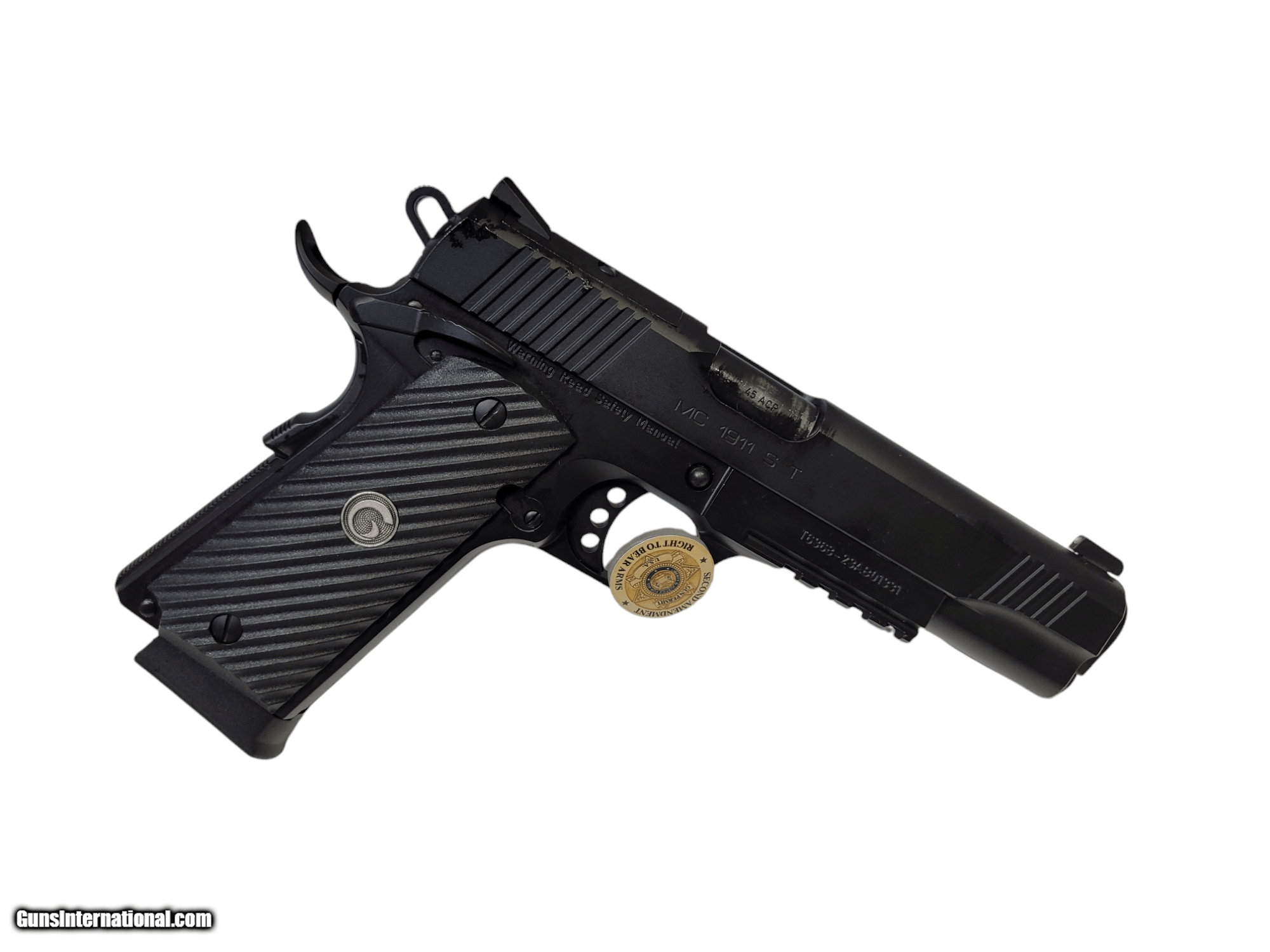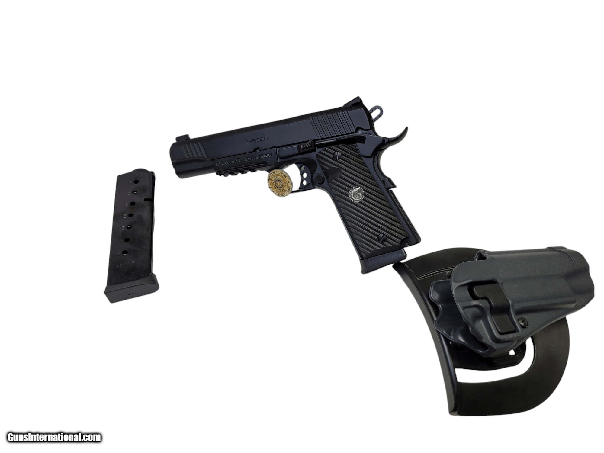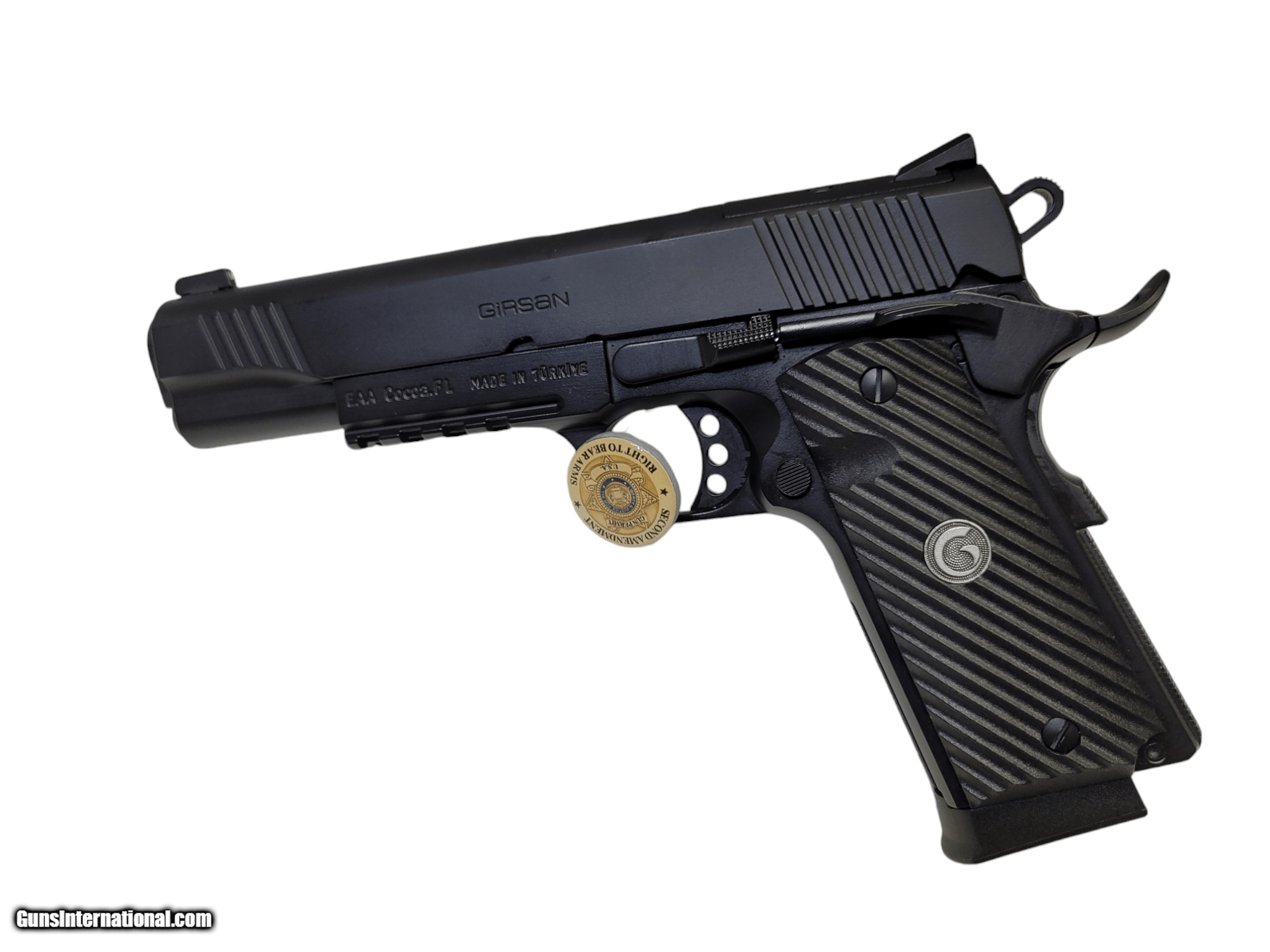 Description: Guns Listing ID: 463130 EAA GIRSAN 1911 .45 ACP (Used) The EAA Girsan 1911 in .45 ACP is a well-crafted homage to the classic M1911 design, delivering solid performance and quality craftsmanship at an accessible price point. Manufactured by Girsan in Turkey and imported by European American Armory (EAA), this 1911 variant is favored for both its functionality and classic aesthetics. Key features include: Caliber: .45 ACP, offering classic stopping power and reliability. Barrel Length: 5 inches, consistent with the standard full-size 1911 design, providing balance and accuracy. Action: Single-action, with a crisp, predictable trigger pull typical of 1911 models. Frame and Slide: Steel construction with a durable matte black or blued finish, lending a classic appearance and enhancing durability. Grips: Checkered grips for a secure, comfortable hold and traditional styling. Sights: Standard fixed or dovetail sights, depending on the model, for straightforward aiming. Magazine Capacity: Typically 8+1 rounds, offering standard capacity for 1911 pistols. Safety: Includes a thumb safety and grip safety, as per traditional 1911 design, ensuring secure handling. This used model may show minor handling marks but is built to handle regular use. The EAA Girsan 1911 is an excellent choice for both enthusiasts of the 1911 platform and those looking for a reliable, hard-hitting sidearm. Perfect for target shooting, self-defense, or as a classic piece for any collection. SOLD Manufacturer: GIRSAN Model: 1911 ST Condition: Used - Non-Certified Barrels: 5 BARREL Gauge Info: .45 ACP Finish: black |