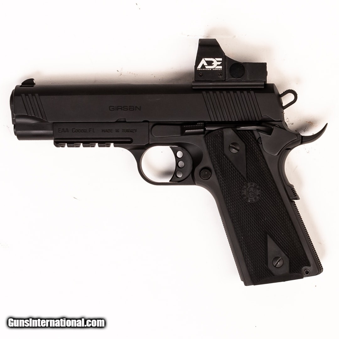 Description: Guns Listing ID: 475627 The EAA Girsan MC 1911 C T is an affordable yet well-made 1911. This will make a great target shooter, home-defense tool, and general-purpose sidearm. This handgun features an ADE optic, one 8-round magazine, Hogue grips installed (original included), and the original case. SOLD Manufacturer: GIRSAN Model: MC 1911 C T Caliber Info: 45ACP Condition: Used - Certified Barrels: 4.2 BARREL Finish: BLACK |