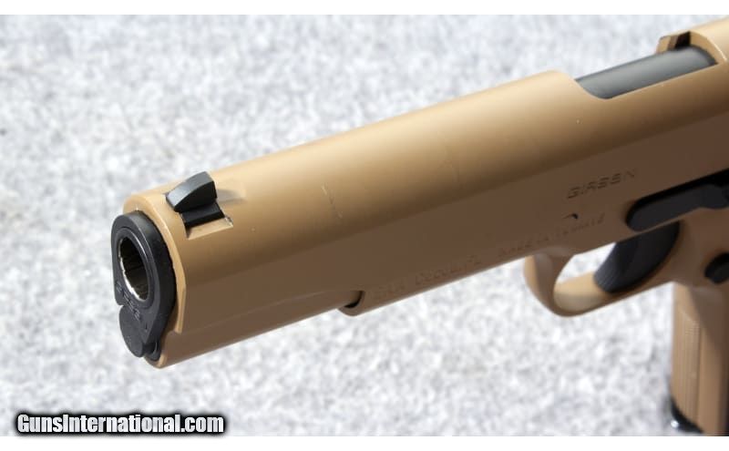 Description: The flat dark earth Girsan MC1911S XLV features: a FDE Cerakote finish, polymer grip panels, low profile three dot sights, skeletonized hammer, nitride-treated barrel, 8 round magazine and extended ambidextrous thumb safeties. This is a fine personal defense pistol manufactured in Turkey 2022. .45 ACP SOLD Metal Condition: Excellent Bore Condition: Excellent with signs of use Barrels: 5 inch barrel Triggers: Single action Weight: 40 Oz. Sights: Low profile three dot combat sights Item Location: Lehi, UT |