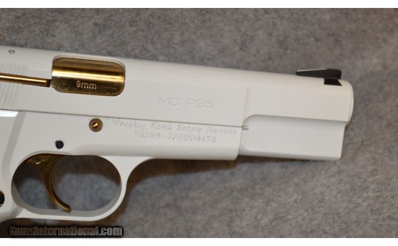 Description: The short recoil 9 mm, 4 5/8" barrel, along with the slide, allow for quick second shot resets, getting the shooter on target faster. The rear sight is a windage drift adjustable sight and the front is a dovetail sight. The traditional slim trigger allows for a short trigger reset and is accessible even while wearing gloves and the serrated ring hammer provides a positive grip while cocking. Enhanced external controls include external extractor, ambidextrous safety, and magazine disconnect safety. 9mm Luger SOLD Barrels: 6.5 Weight: 5 lbs Item Location: Lexington, KY |