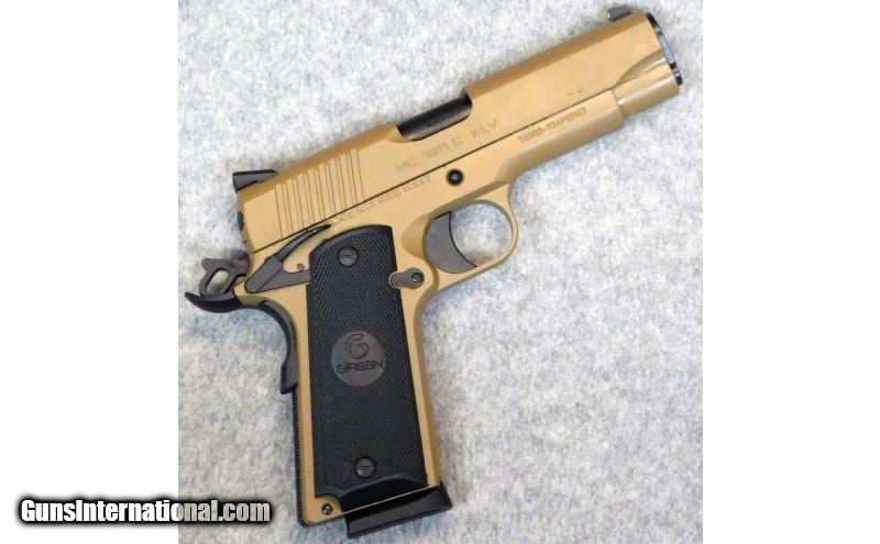 Description: Girsan ~ MC1911 C XLV ~ Chambered in .45 Auto. Is a factory blemished 1911 of Turkish origin. Features a 4.5" barrel paired with iron sights, firearm is finished in Davidson Dark earth and has an ambidextrous thumb safety. Comes with factory box and a single 8 + 1 capacity magazine. .45 Auto SOLD Chambers: .45 Auto. Metal Condition: Very good condition. Bore Condition: Good condition. Barrels: 4.5" inches. Triggers: 8 pounds. Weight: 2.5 pounds Sights: Iron sights. Item Location: Acworth, GA |
