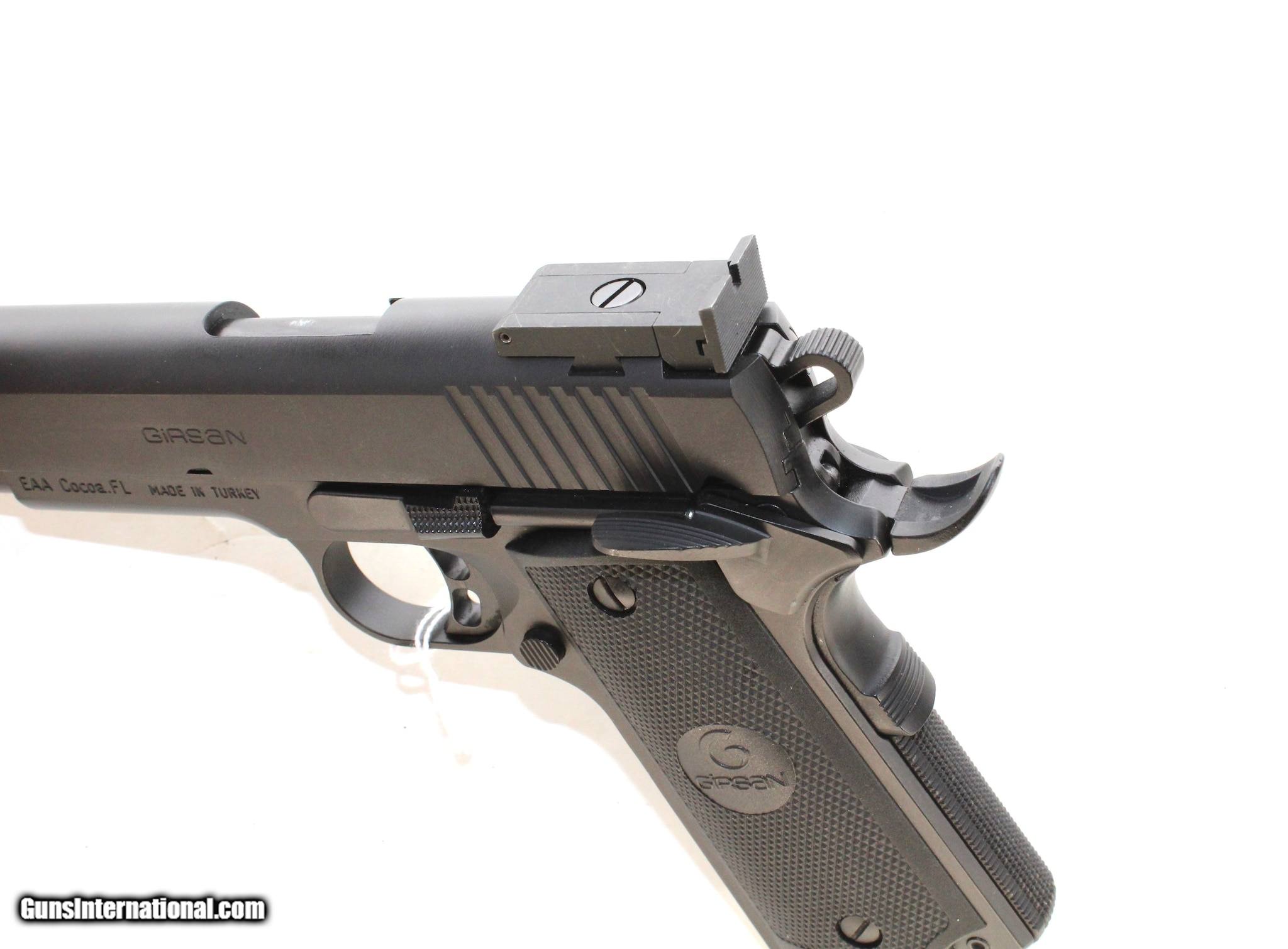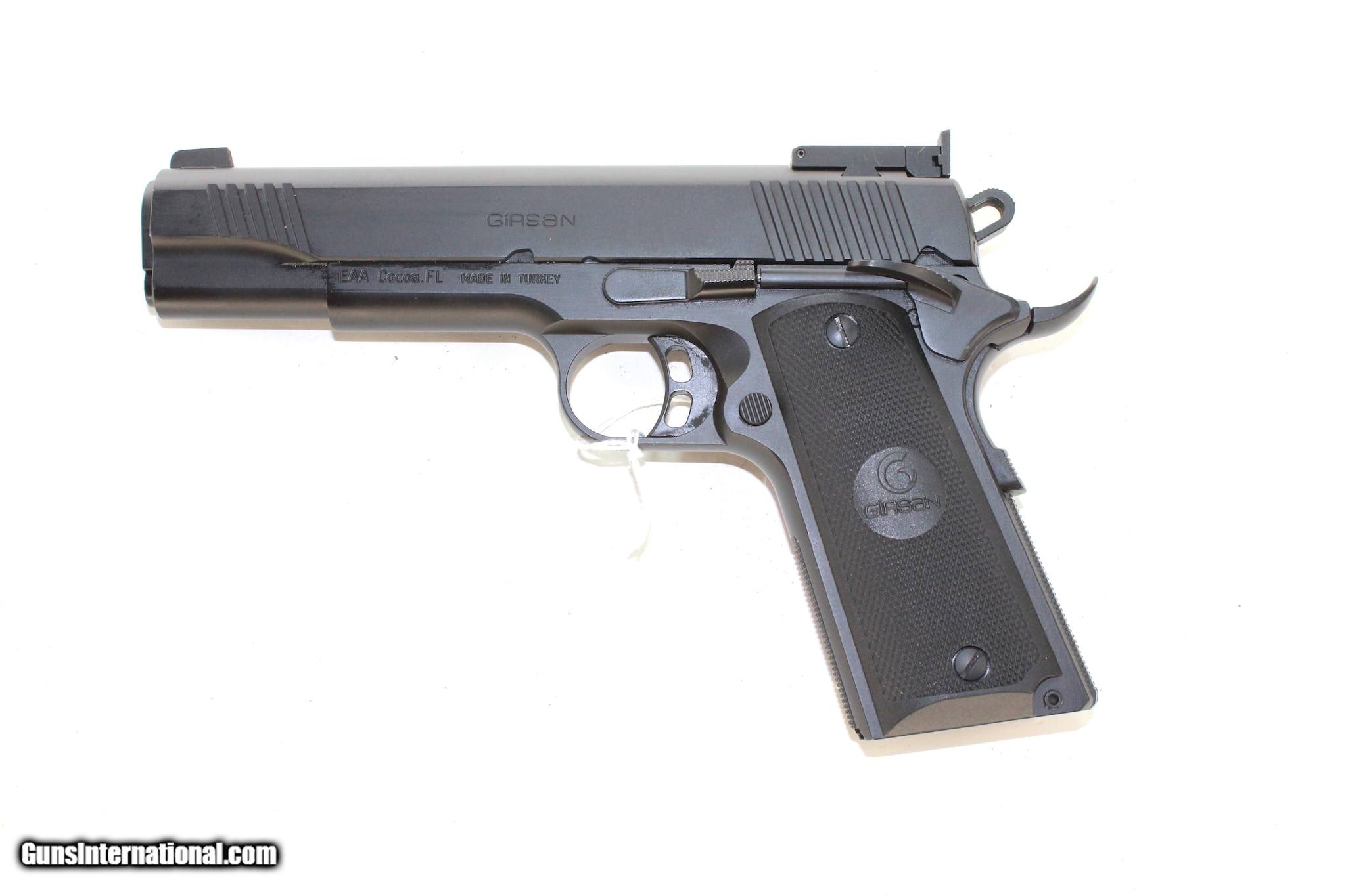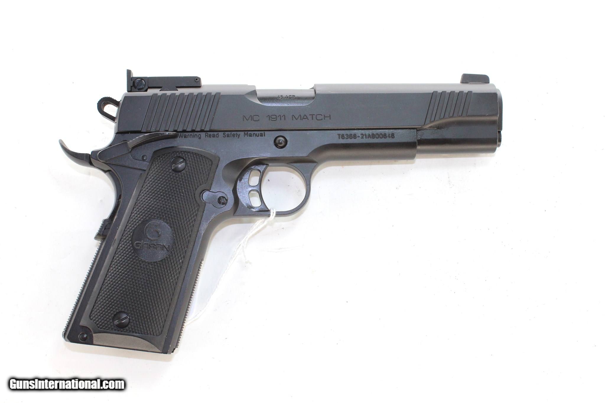 Description: Guns Listing ID: 1062899 SER#T6368-21AB00646, 45 ACP, 5” barrel with a bright excellent bore. The metal surfaces pistol retain about 99% plus Parkerized finish while the barrel is bright. The grips rate excellent with a light handing mark or two. One magazine is included and the action of this excellent condition pistol appears to function well mechanically. The Girsan MC1911 Match is a superior full-size 1911 model handgun ready out of the box for competition, personal carry or target practice. It comes with plenty of stopping power in .45ACP It is built rock-solid with full steel machined frame and slide. The rear sight is fully adjustable. The grips are G-10 laminated and checkered for superior grip performance. If you are a fan of 1911’s you have to check the Match out! SOLD Manufacturer: GIRSAN Model: MC1911 MATCH Caliber Info: .45 ACP Condition: Used - Non-Certified Barrels: 5 BARREL Finish: BLACK |