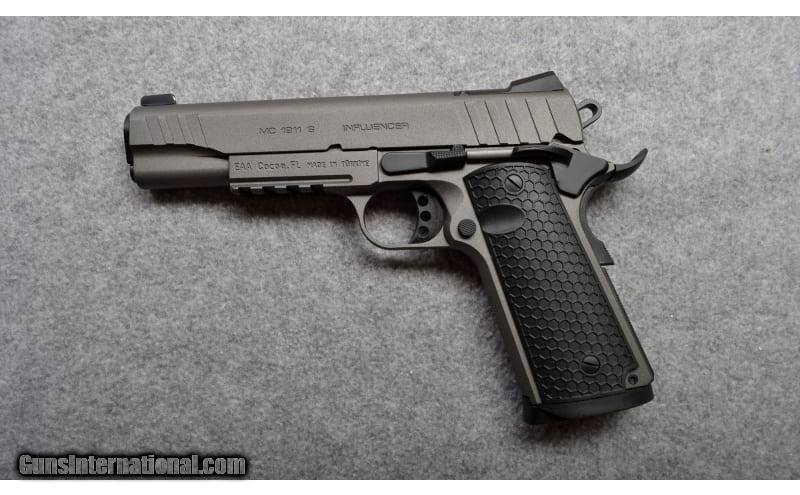 Description: Pre-owned Girsan MC1911S Influencer semi-auto pistol chambered in .45 ACP, 5" barrel, checkered grips, ambi safety, accessory rail. .45 ACP SOLD Metal Condition: New Condition Bore Condition: New Condition Barrels: 5 inches Weight: 2.55 lbs. Sights: 3-white dot sights with optic cut Item Location: Springfield, OR |